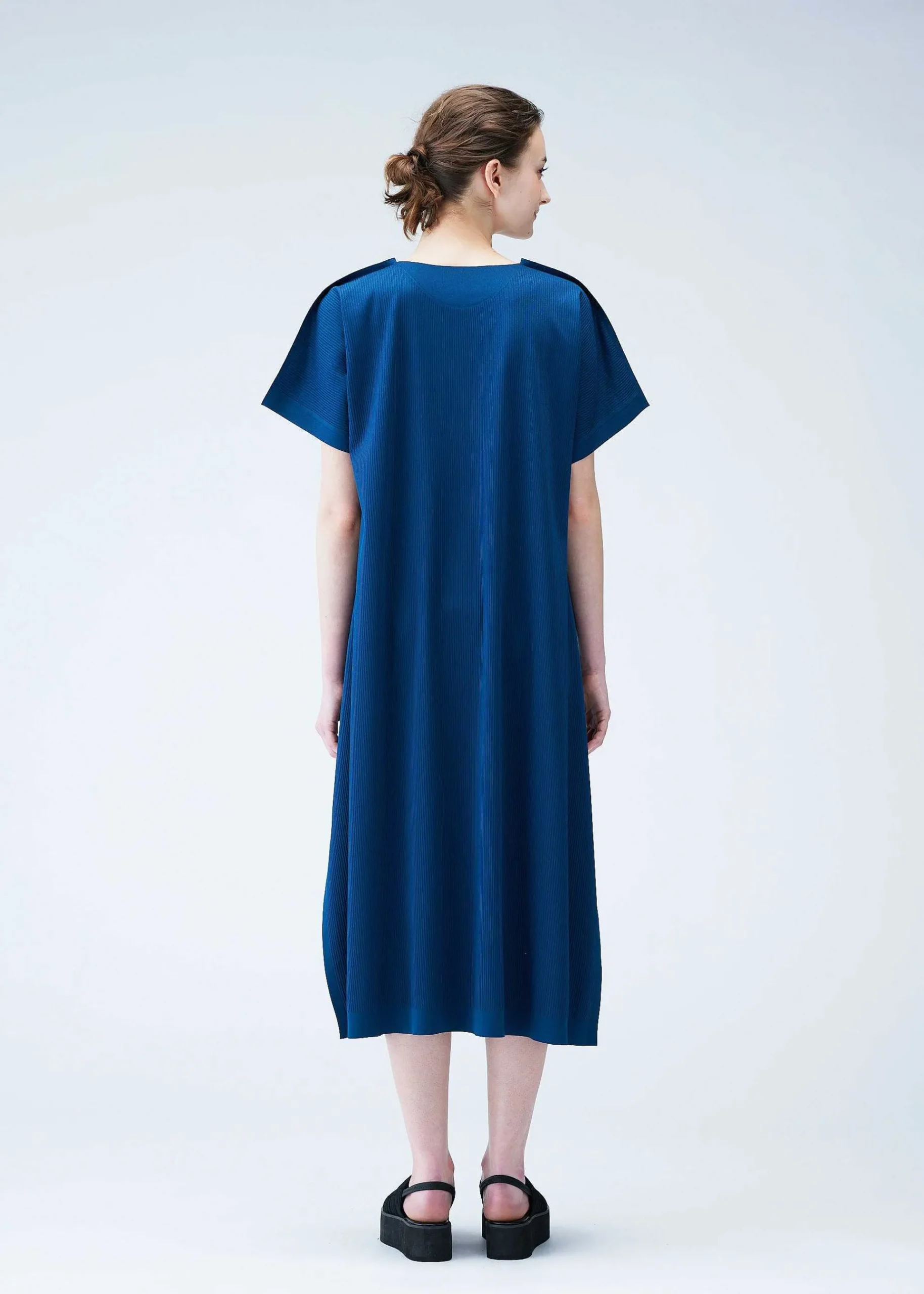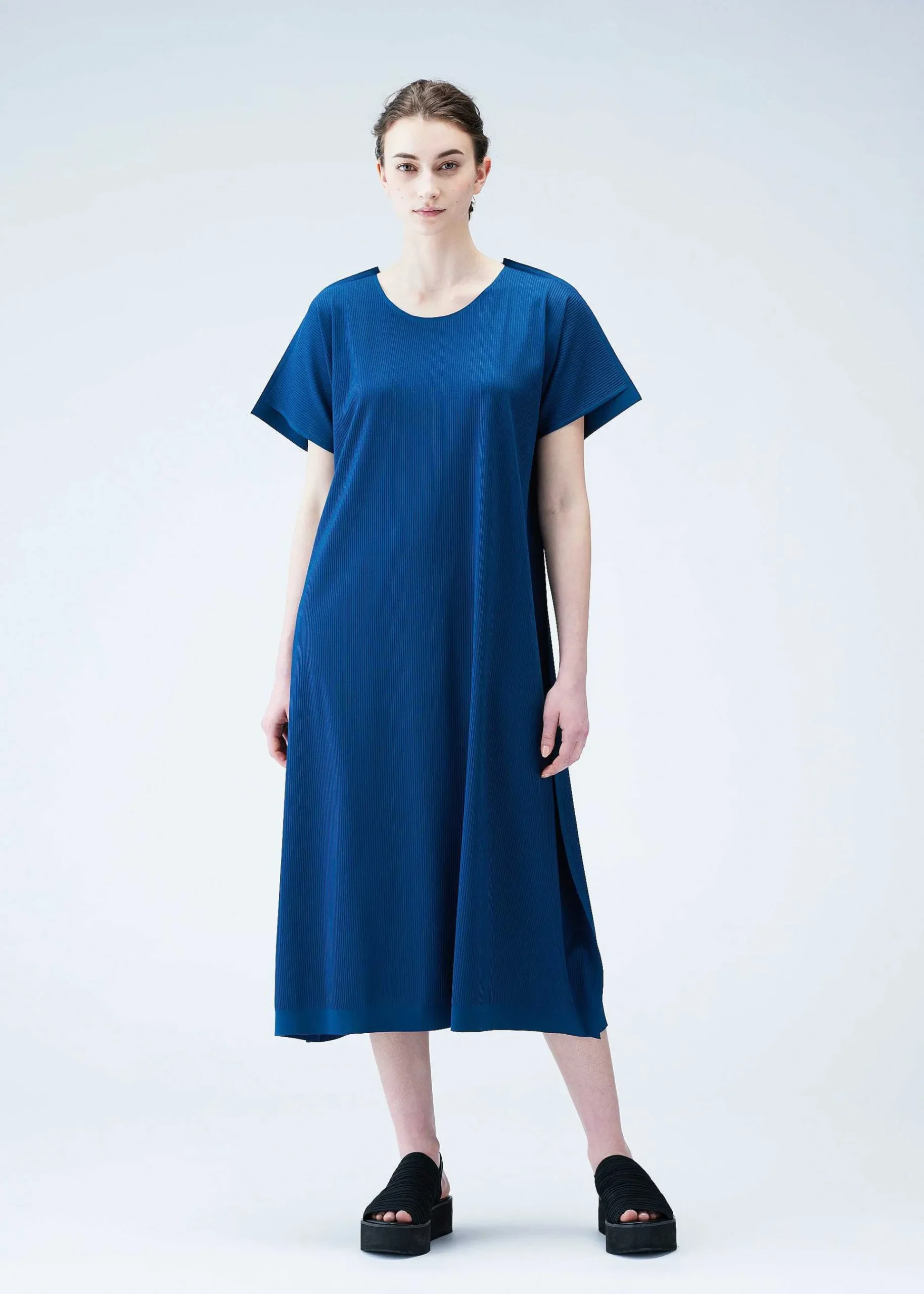 Pleated Crew Neck Short Sleeve Dress Made With A-Poc Fabric. The Edges Of The Fabric Seams Add An Accent To The Shoulders And Slits.