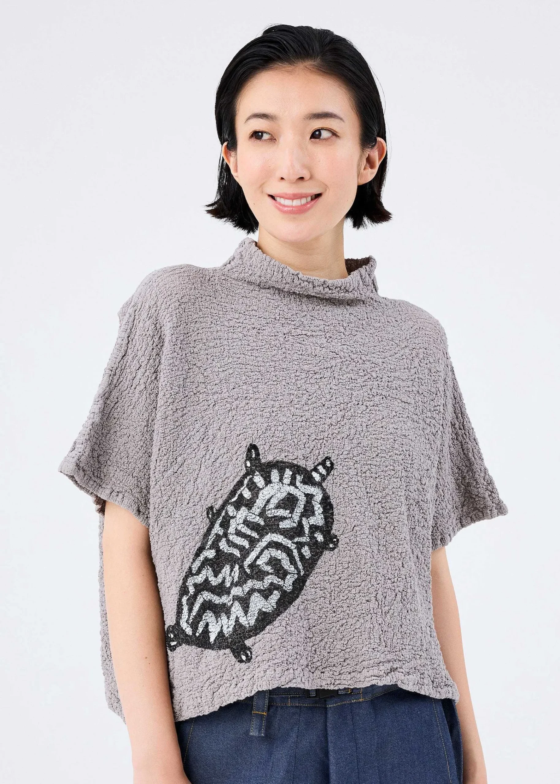 This Short-Sleeved Cauliflower Top Features The Comfortable Feel Of Cotton And A Stretchy, Uneven Texture. Each Piece Is Hand-Printed With A Unique Illustration Of An Animal’S Shape Or Body Pattern.