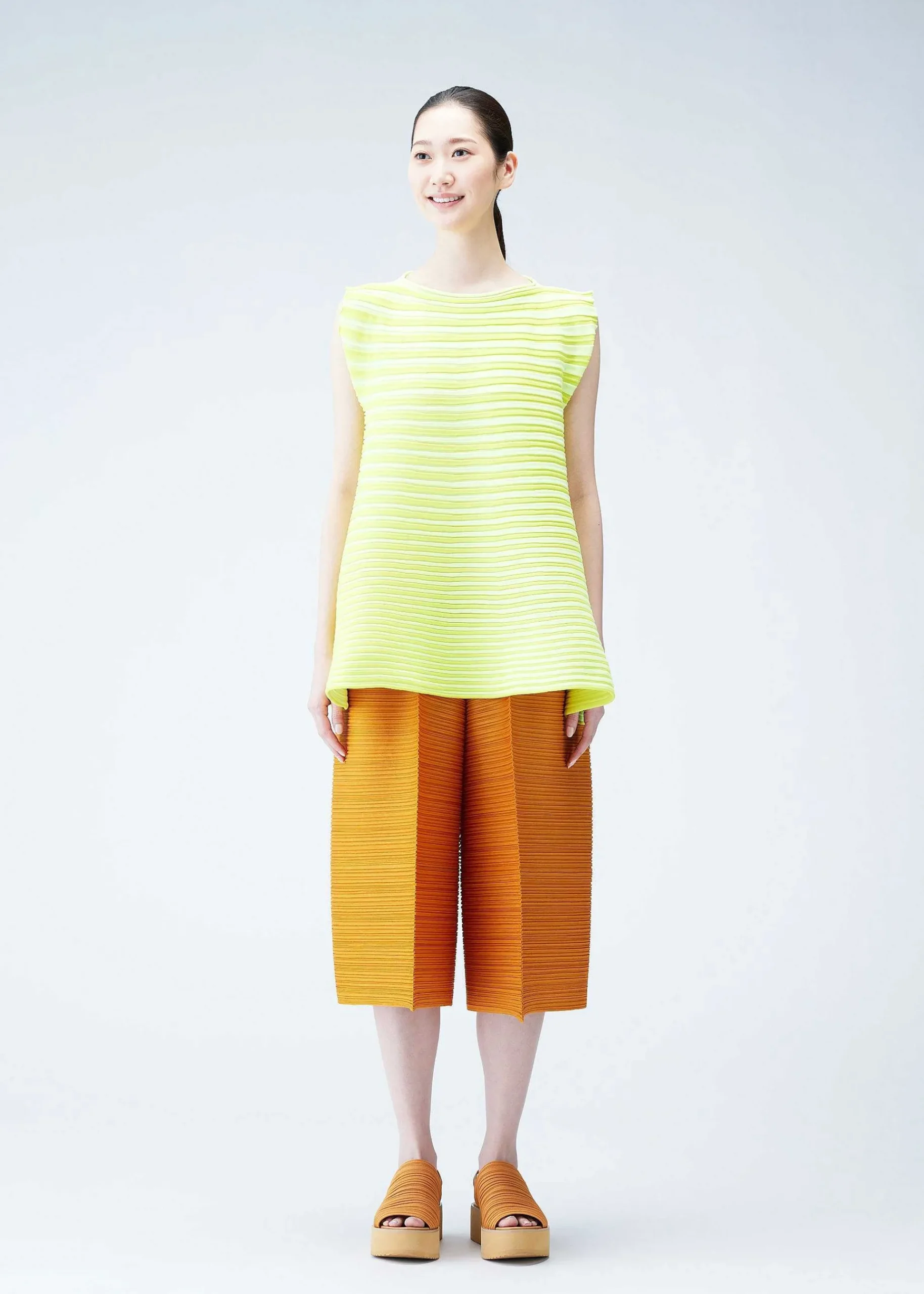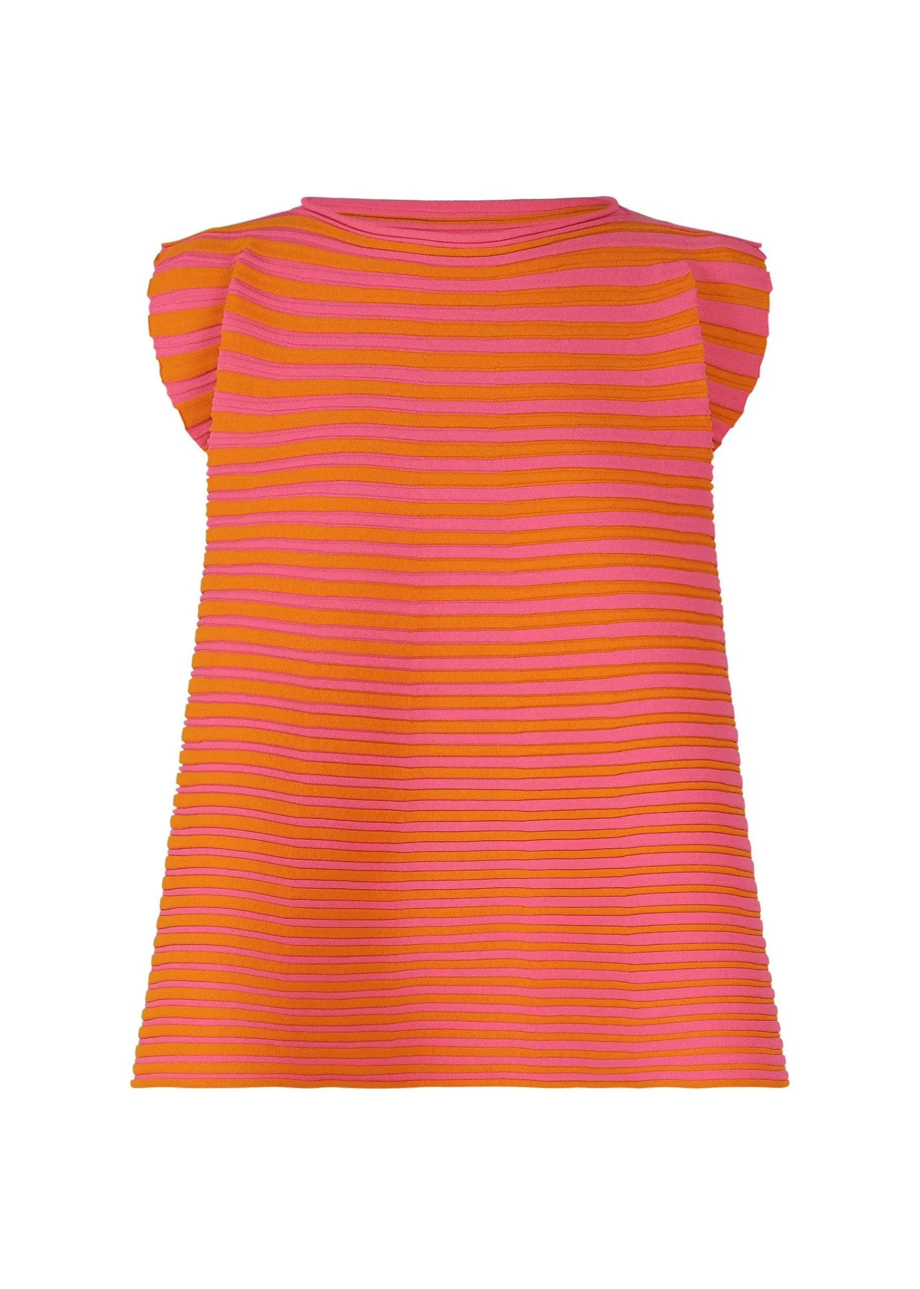 Seamless, Sleeveless Knit With Horizontal Pleats Made Of Knitted Fabric That Bounces With Movement. By Adjusting The Thickness Of The Border, This Design Gives The Appearance Of A Horizontal Color Gradation. Made From Recycled Polyester Yarn, This Easy-Care Textile Is Machine Washable.