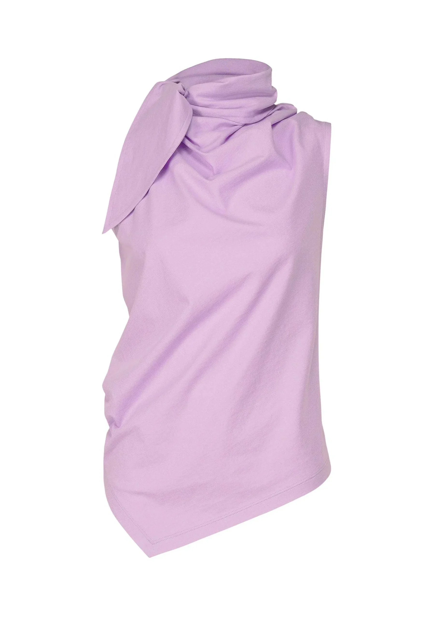 A Sleeveless Top With A Voluminous Design At The Collar. We Use A Strong Twist Jersey Cotton Jersey That Eliminates The Fluff Of The Yarn To The Maximum And Has A Fullness That Makes It Easy To Release From The Skin. It Is Made With A Flat Pattern, But By Tying The Collar And Wearing It, A Beautiful Drape Is Created.