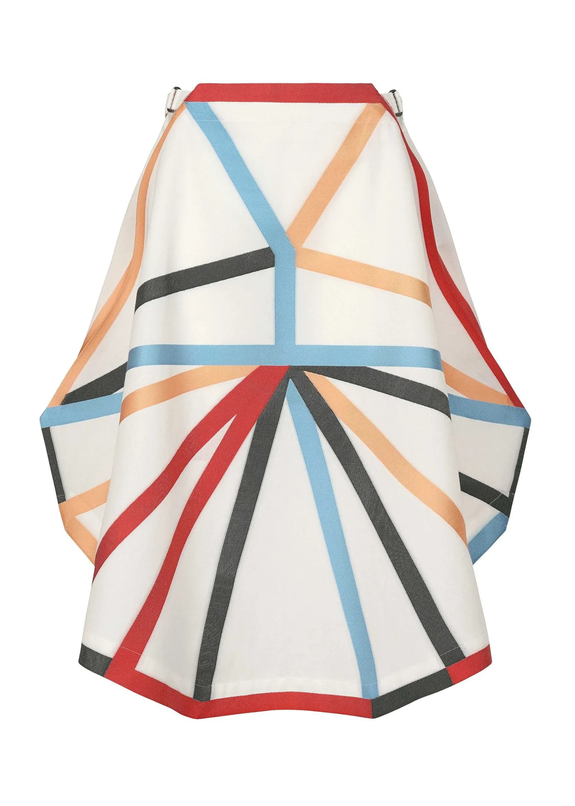 A Skirt Featuring A Pattern Woven With Jacquard, With The Motif Of A Tetrahedral Development. The Base Fabric Is Made Of Cotton And Recycled Polyester To Give It A Soft Texture. Only Recycled Polyester Is Used For The Lines That Form The Pattern So That It Can Be Heat Pressed. Partial Press Processing Is Used To Create An Edgy Silhouette.