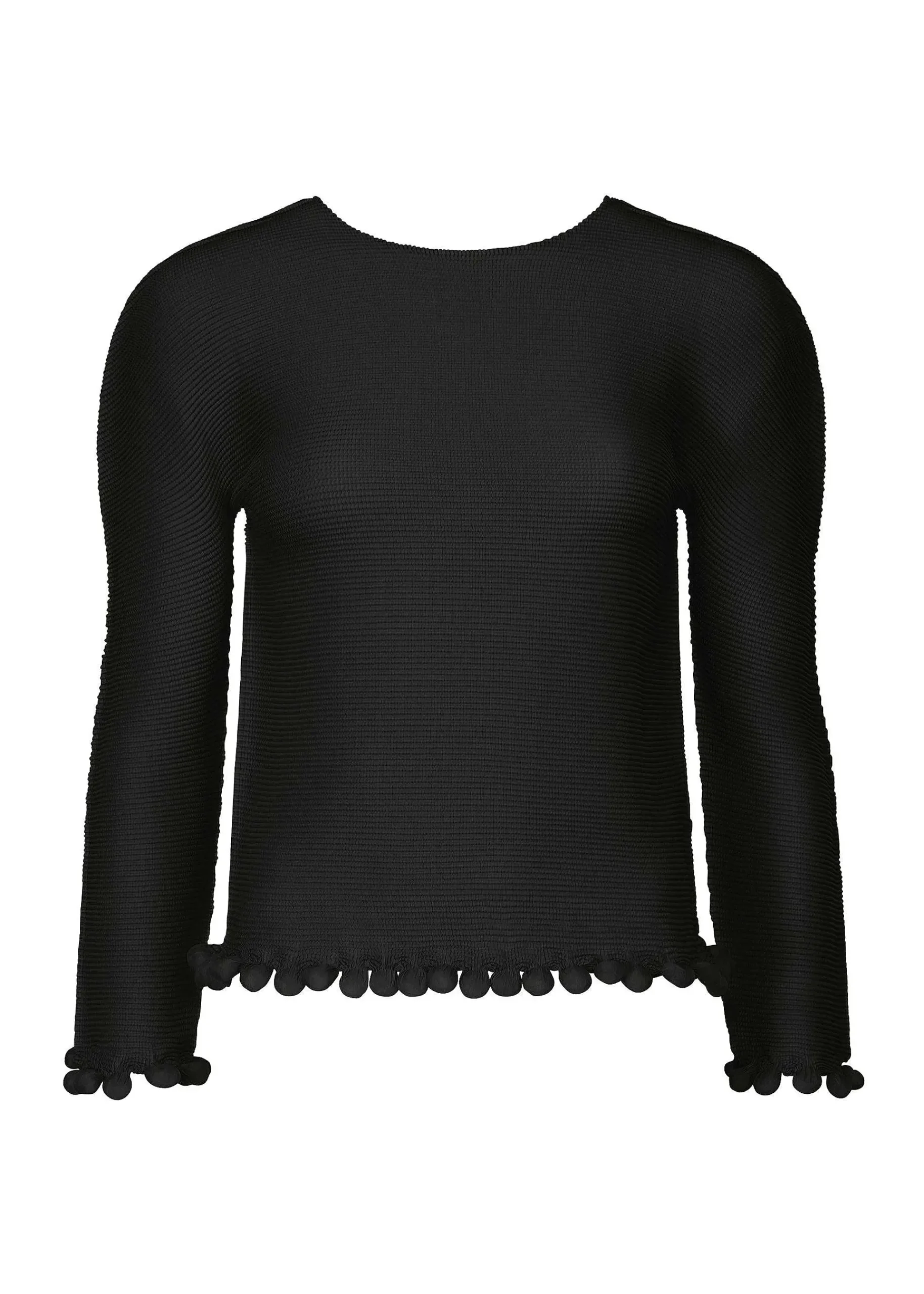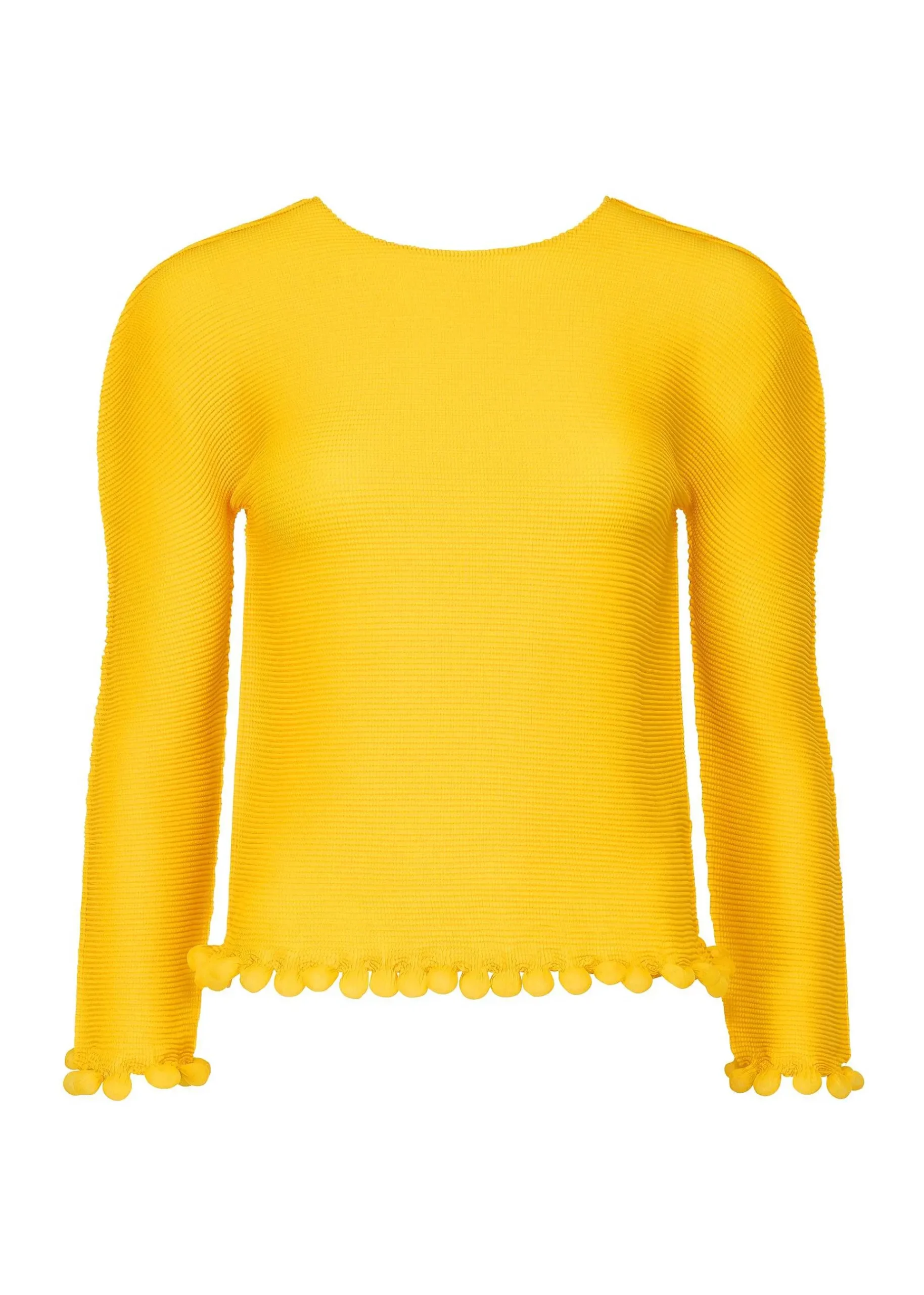 This Colorful Stretch Pleated Crew Neck Long Sleeve Top Is Made With Pleats Vertically And Horizontally, Then Each Piece Is Hand Tied With Beading And Placed In A High Temperature Kiln To Create A Three-Dimensional, Bumpy Texture.