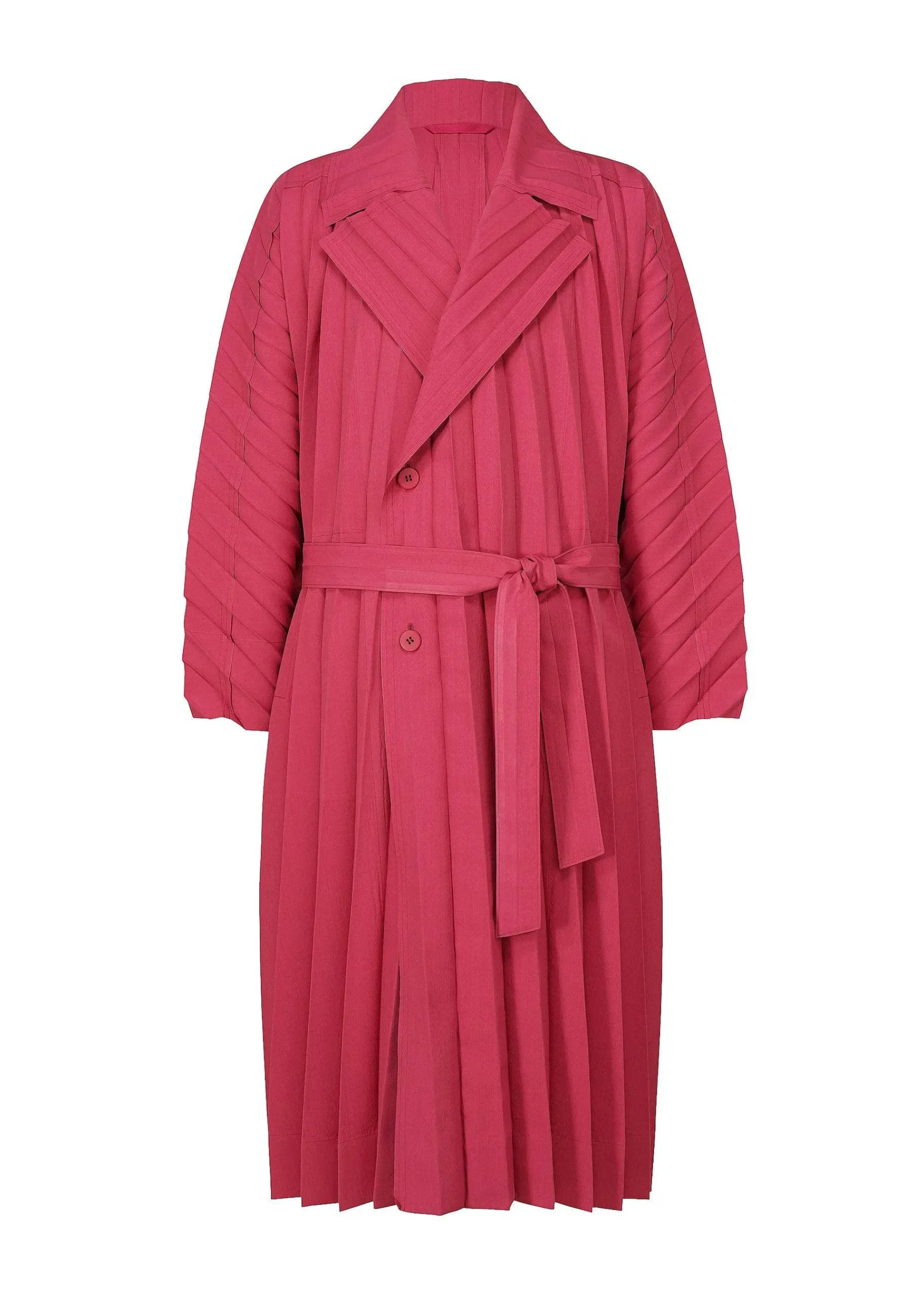 A Trench Coat Made Of Densely Woven Polyester Material With Hand Pleats. There Are Pockets On Both Sides.