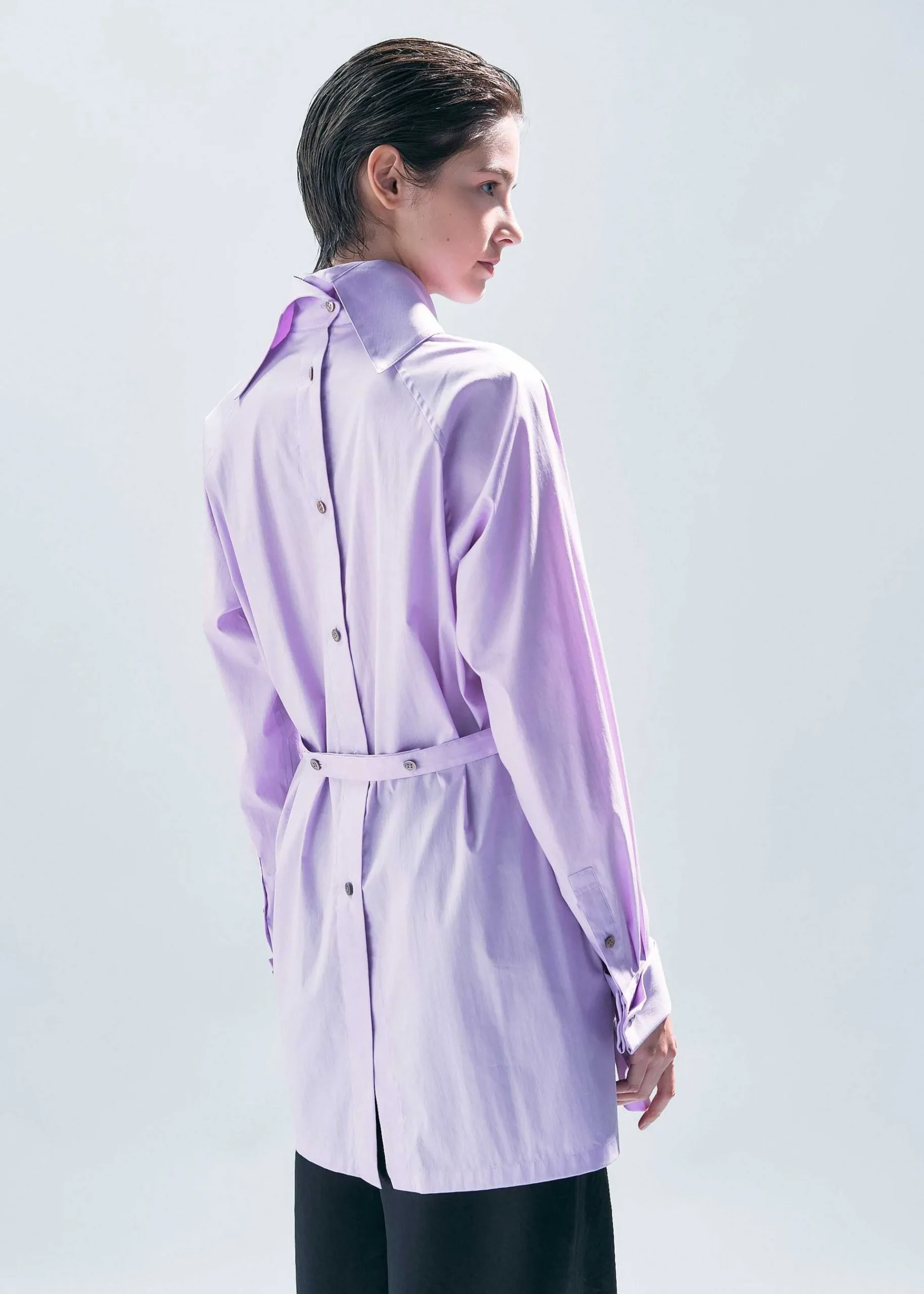 A Back-Opening Shirt With An Impressive Double Cuff Design. The Warp Thread Is Cotton, The Weft Thread Is Originally Spun Nylon Stretch Thread, And The Material Is Woven With A Twill Structure. It’S Stretchy And Comfortable To Wear, And The Material Has A Slight Sheen And Firmness, So It’S Recommended For Occasion Wear.