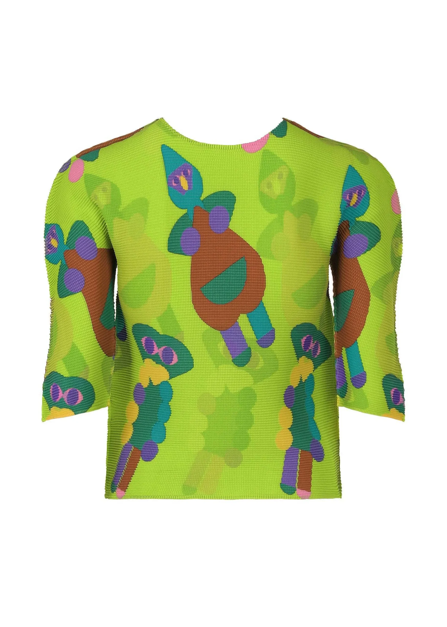 Round Neck Half-Sleeve Top With Elastic Stretch Pleats, Vertically And Horizontally Pleated. A Fun And Pop Colorful Pattern Inspired By Clay Clay. The Pattern Of This Product Is Different One By One. Please Note.
