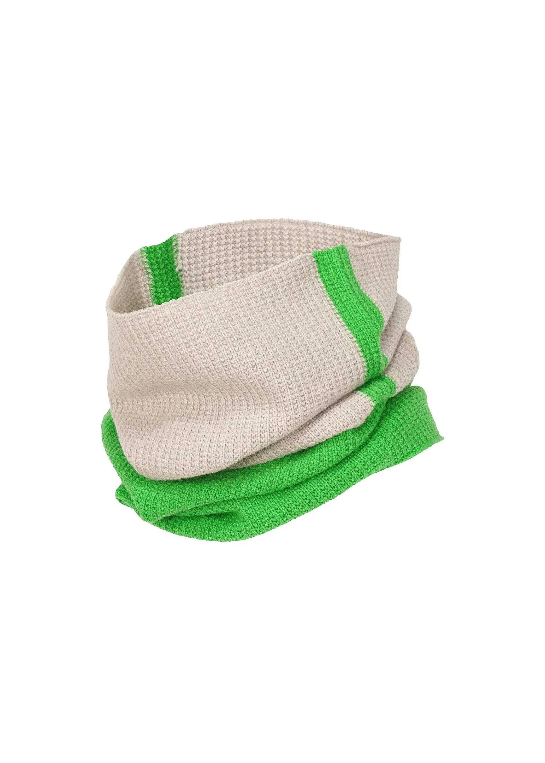 This Neck Warmer Features Side Lines Made Using A Method Unique To Three-Dimensional Knitting. It Has A Hole In The Center So It Can Be Worn In A Variety Of Ways.