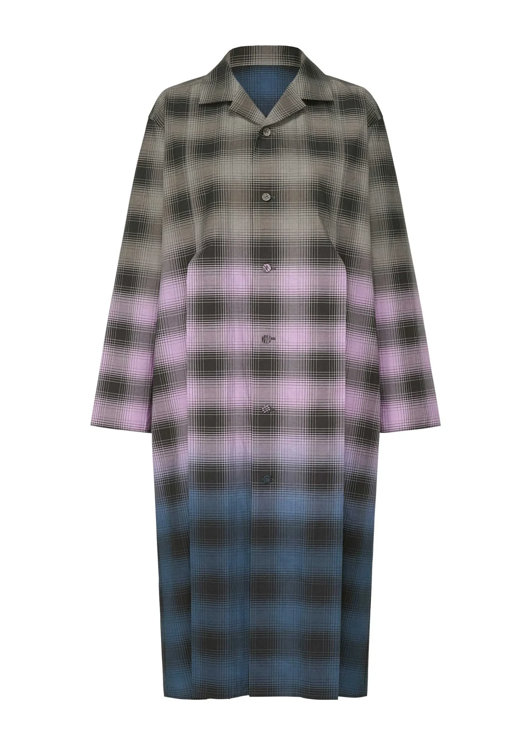 Gorgeous Open-Collar Long-Sleeve Long Shirt Made Of 100% Organic Cotton With A Plaid Broadcloth Material And Printed With A Three-Color Gradation Inspired By The Horizon. The Vivid Gradation Colors Are Printed Using A Special Method By Skilled Craftsmen At A Historic Dye Factory In Kyoto. Due To The Characteristics Of The Dyeing Process, The Color Of This Product May Vary From Piece To Piece. Please Note.