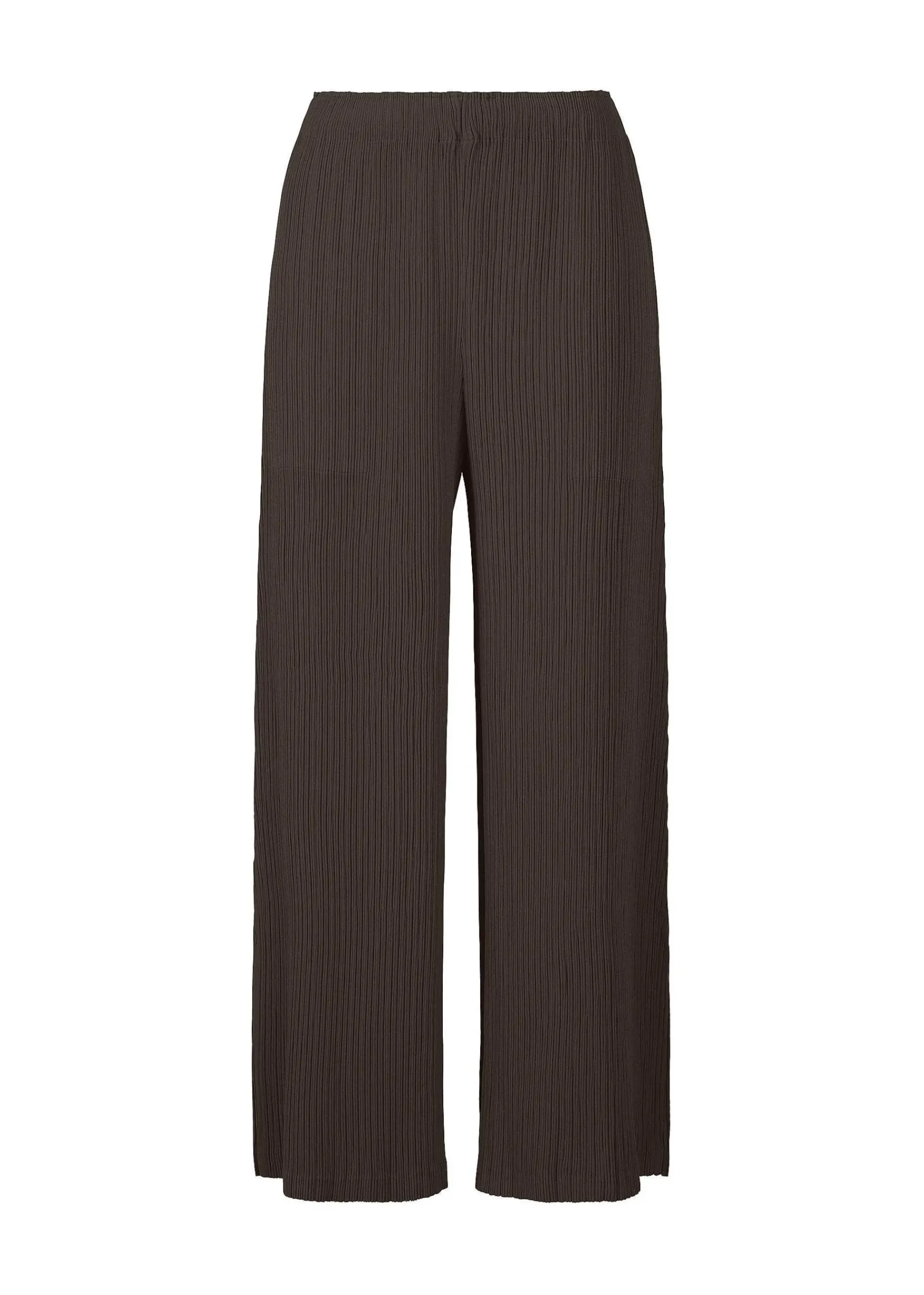 These Wide Pleated Pants Have A Look That Resembles A Scratched And Drawn “Hatching” Pattern. This Texture Was Created By Using A Dry-Touch Polyester Pear-Textured Fabric And Applying Fine Pleating Twice.