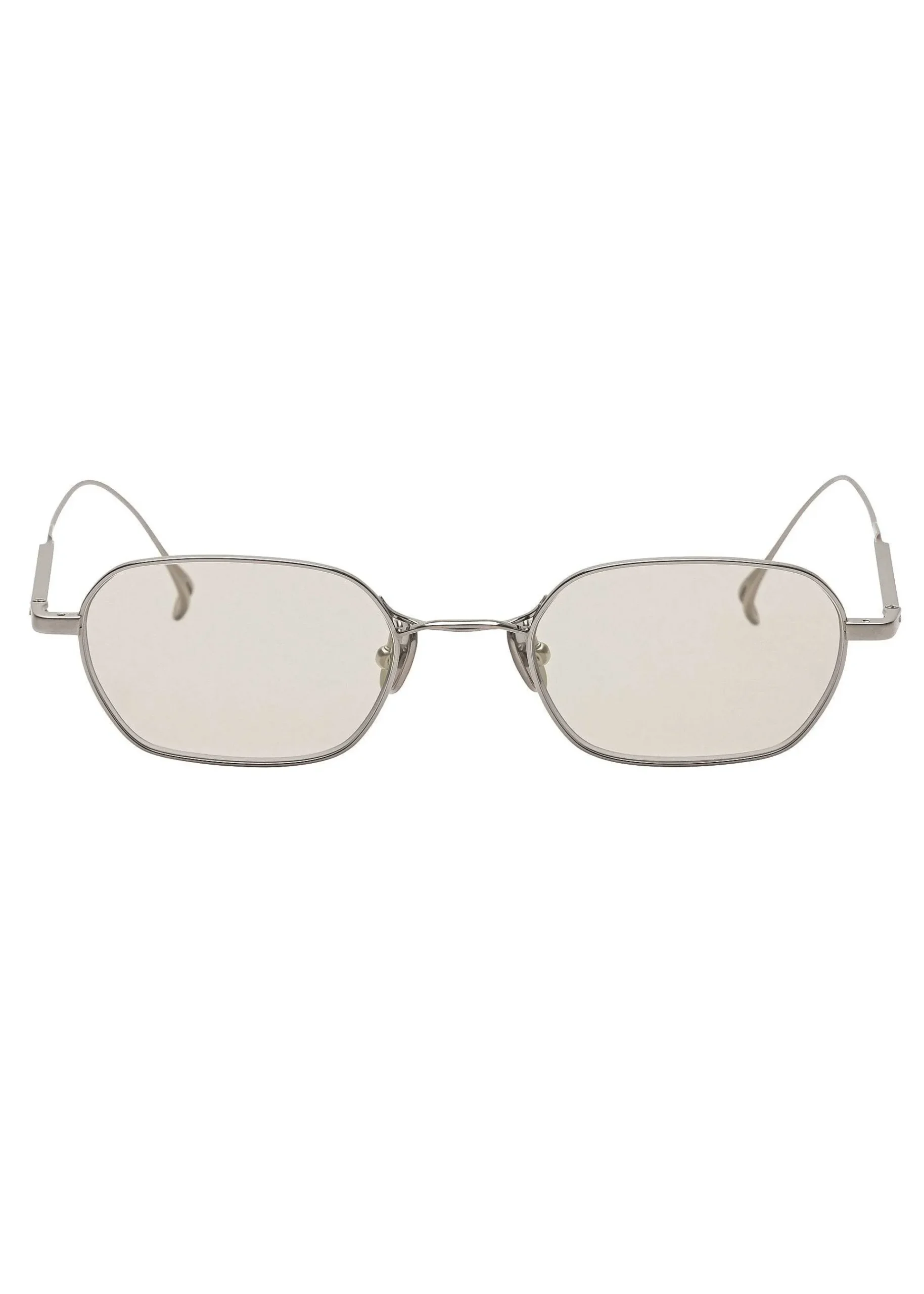 Hexagon-Shaped Sunglasses Featuring A Bridge Where Two Lines Intersect. By Making The Metal Parts Such As The Rim, Bridge, And Temples Thinner, And Having Two Lines Intersect At The Bridge, We Have Achieved A Delicate Yet Lightweight And Highly Rigid Structure. The Frame Pursues A Geometric, Distinctive Form And A Familiar Shape. [Color Details] Front: Silver Metal: Silver Lens: Light Gray [Visible Light Transmittance] 60%≫≫”Bone Series Ⅸ”