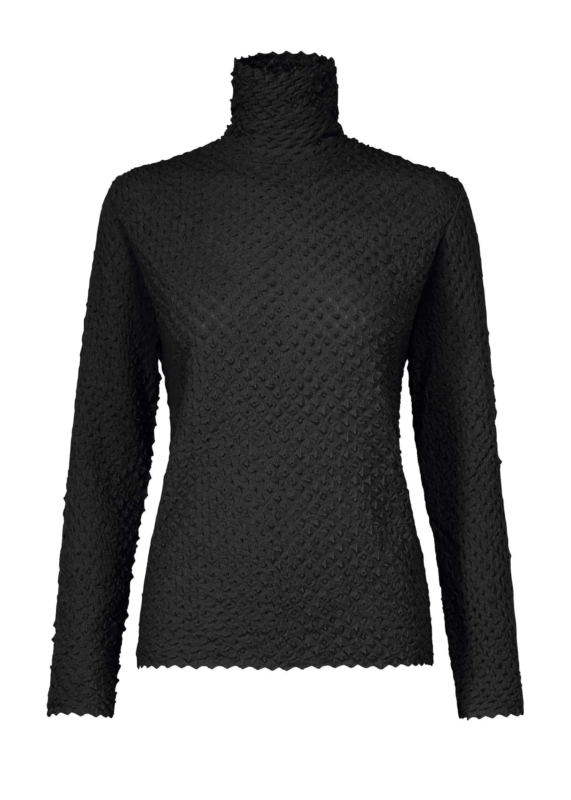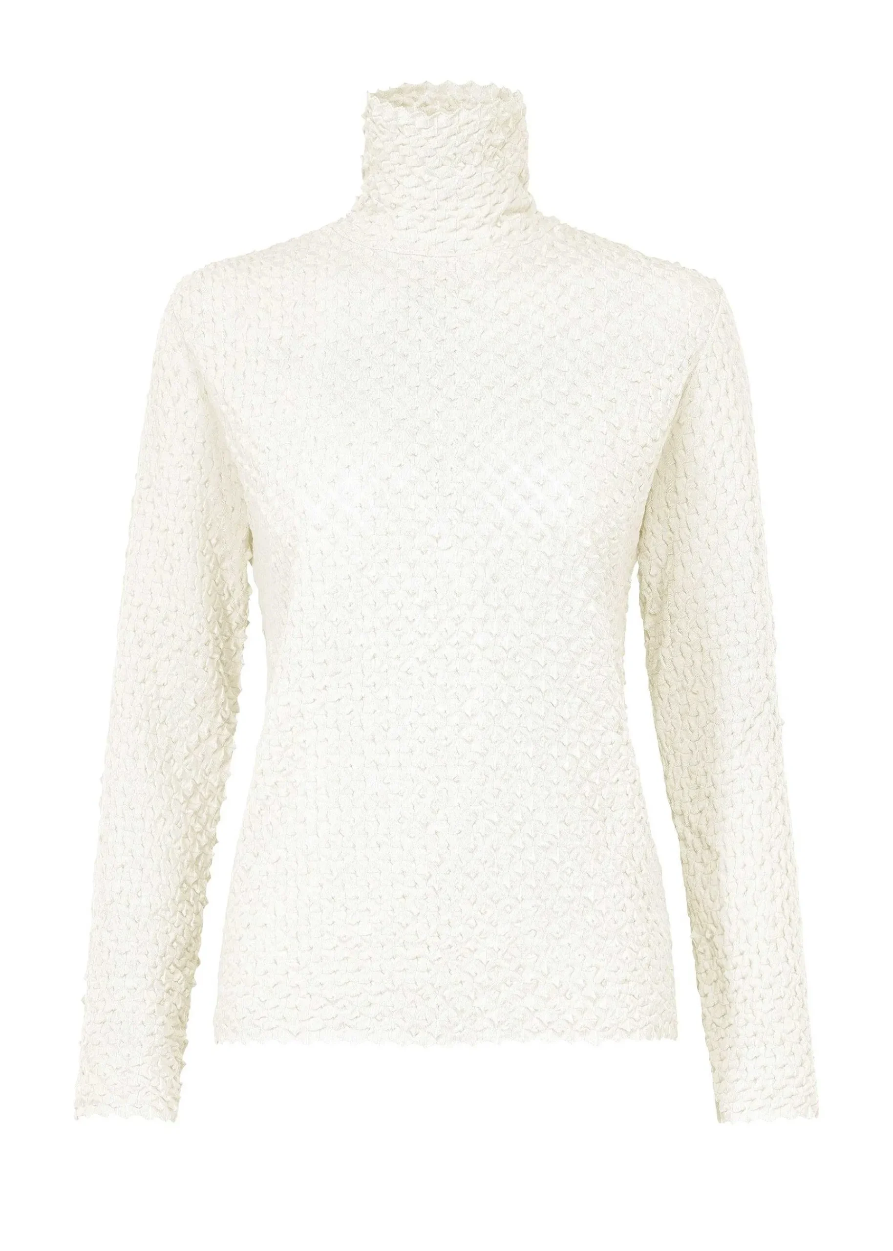 This High-Neck, Long-Sleeved Top Was Knitted In Niigata Prefecture Using Z-Twist Yarn With A Textured Surface. The Super-Tightly Twisted Yarn Gives It A Crisp, Smooth Texture.