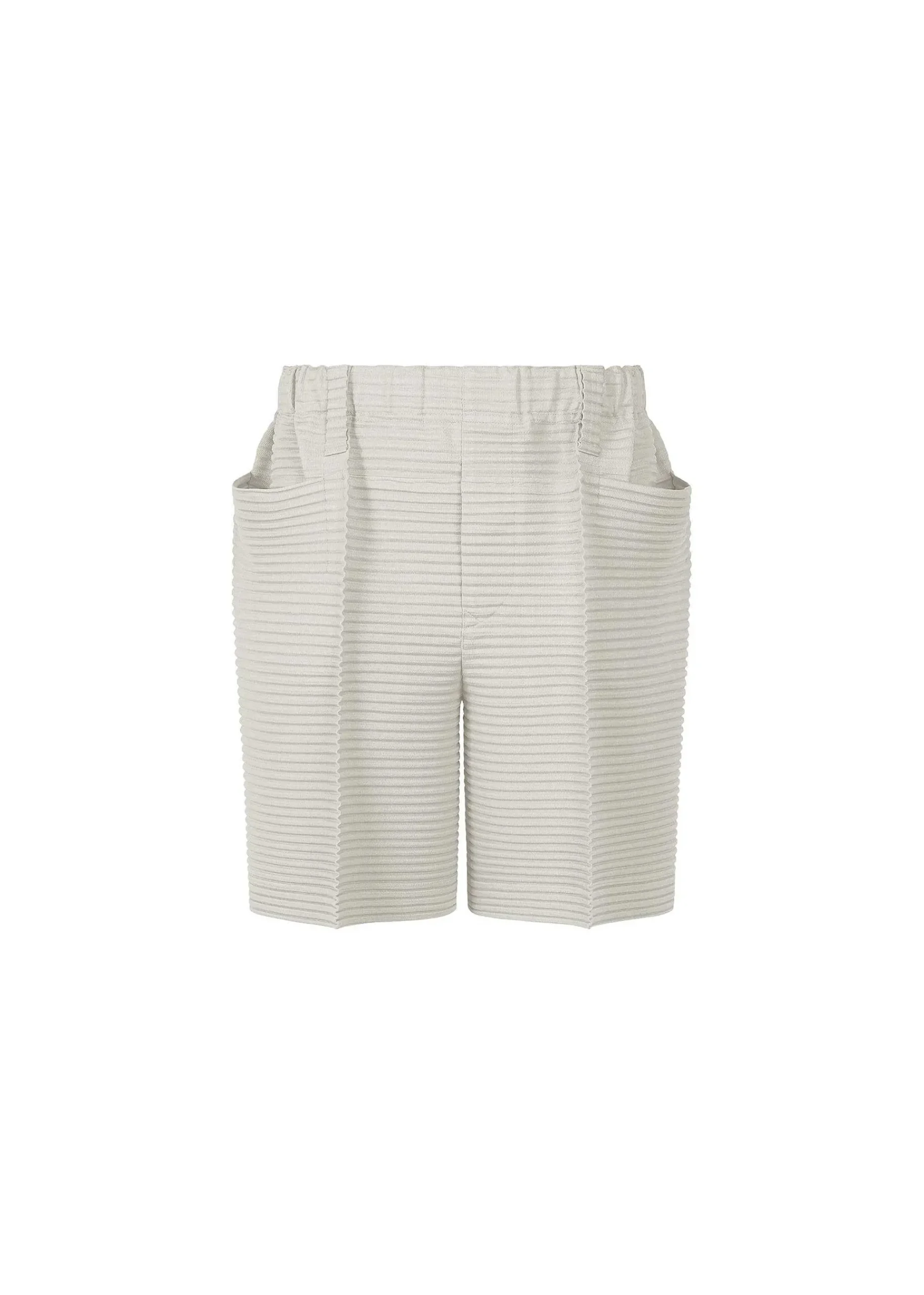 Shorts With Horizontal Pleats. It Is Characterized By Its Bouncy Movement When Worn And Moved. There Are Pockets On Both Sides, Belt Loops At The Waist, And An Internal Drawcord. Front Opening Button Specification.
