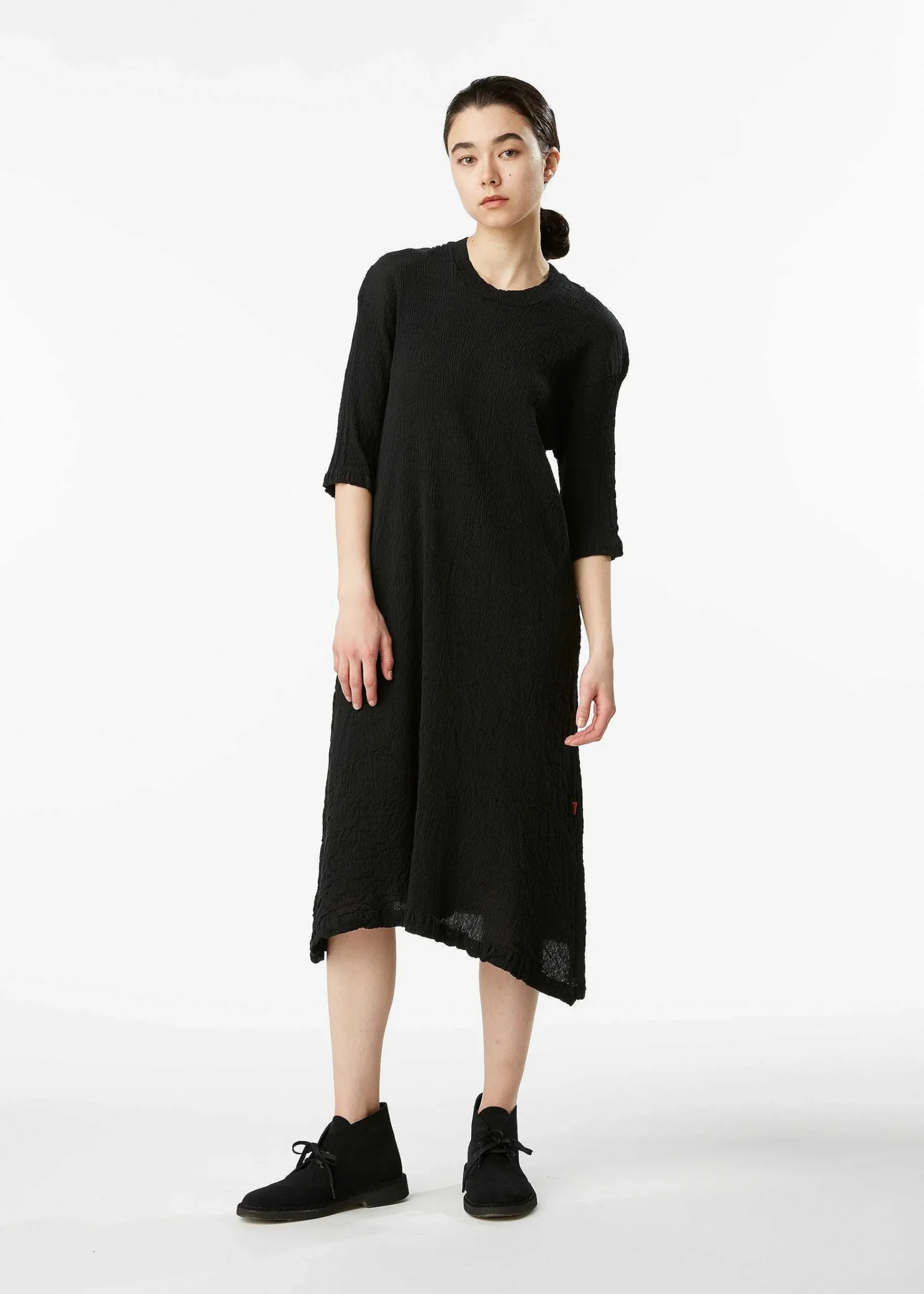 Kyo Chijimi’S Crew Neck, 5/8 Sleeve Dress Features A Light And Supple Texture. It Is Made Of Ultra-Fine Cotton Yarn That Is Further Twisted Than Regular Strong Twist Yarn, And Is Woven On A Loom Unique To The Production Area. Due To The Dyeing Process And The Characteristics Of The Material, The Texture And Size Of This Product Will Vary From Piece To Piece. Please Note In Advance.