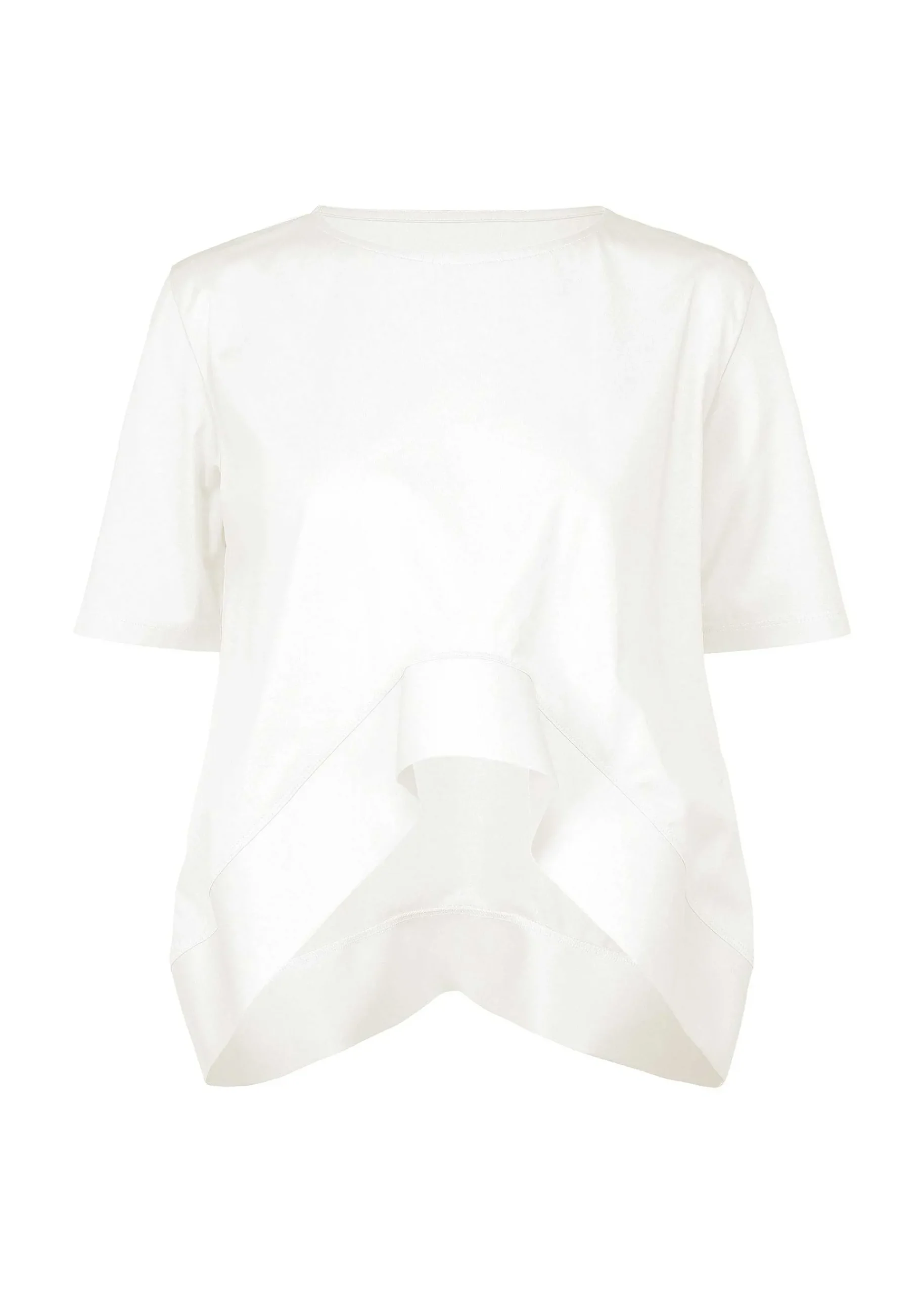 A Short-Sleeved Jersey Top Featuring An Organically Wavy Hem Design. Special Processing Is Applied To Prevent Fuzzing Of The Yarn, Resulting In A Smooth, Cool Texture And Moderate Firmness. Enjoy The Luster And Texture That You Would Never Believe Is Made From 100% Cotton.