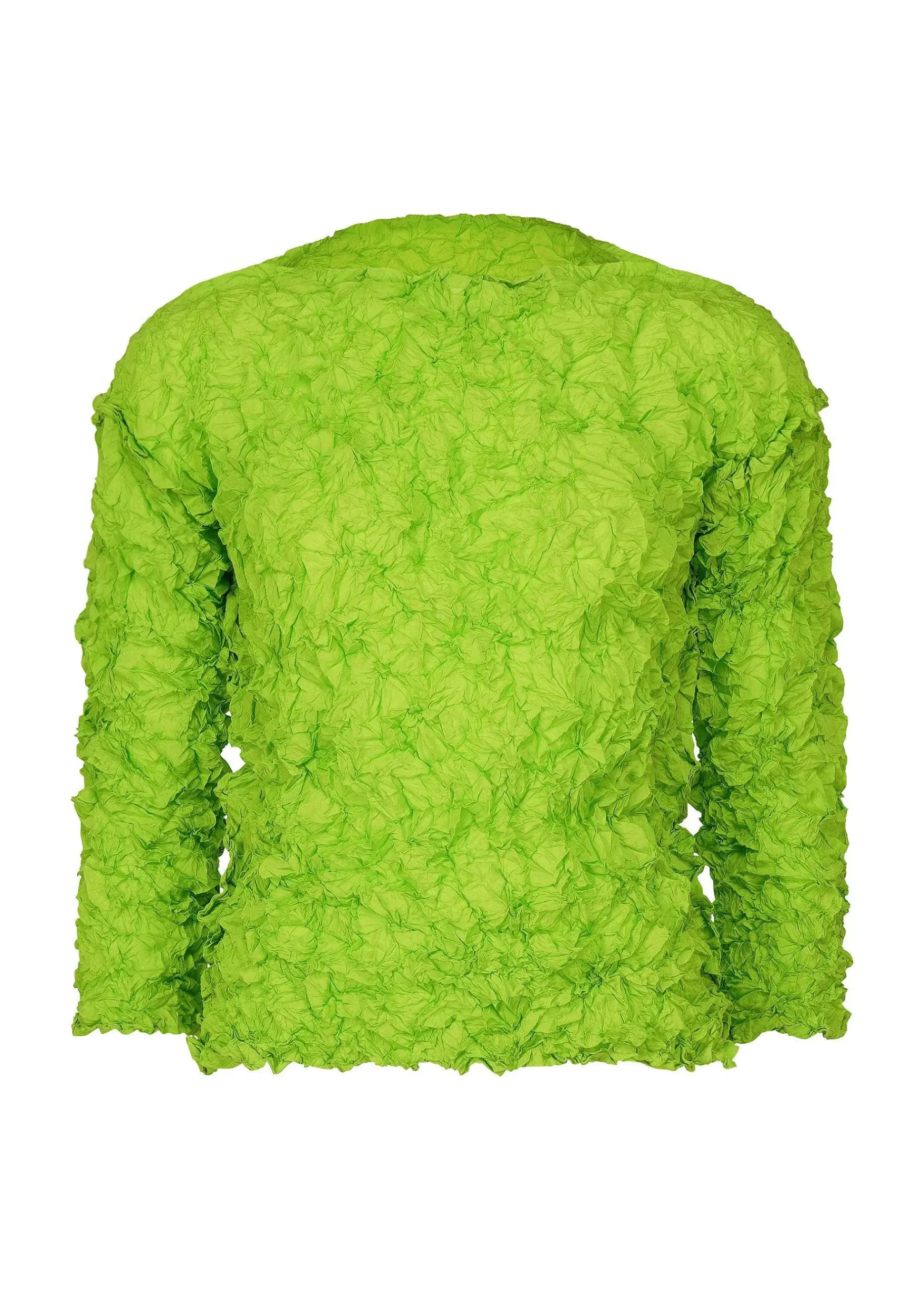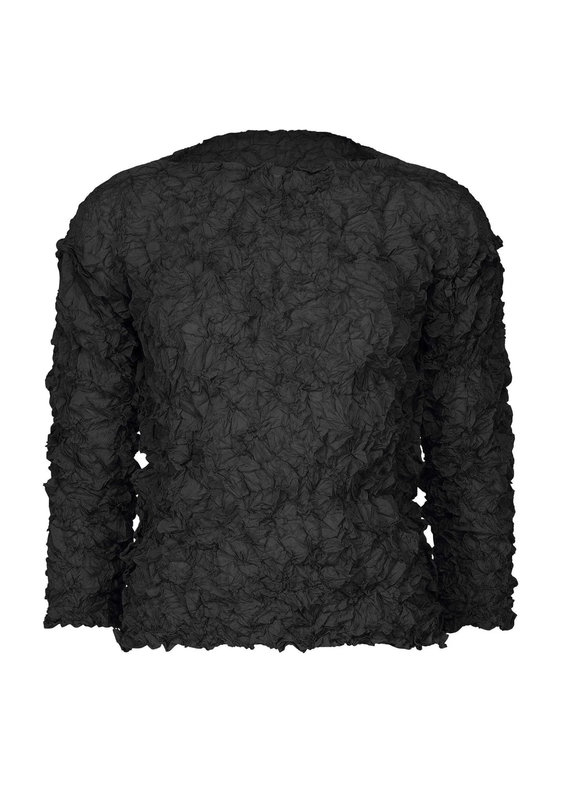 A Three-Dimensional Crew Neck Long Sleeve Top Made Of Thin Polyester Fabric With Crushed Pleats. There Are Slits On Both Sides.