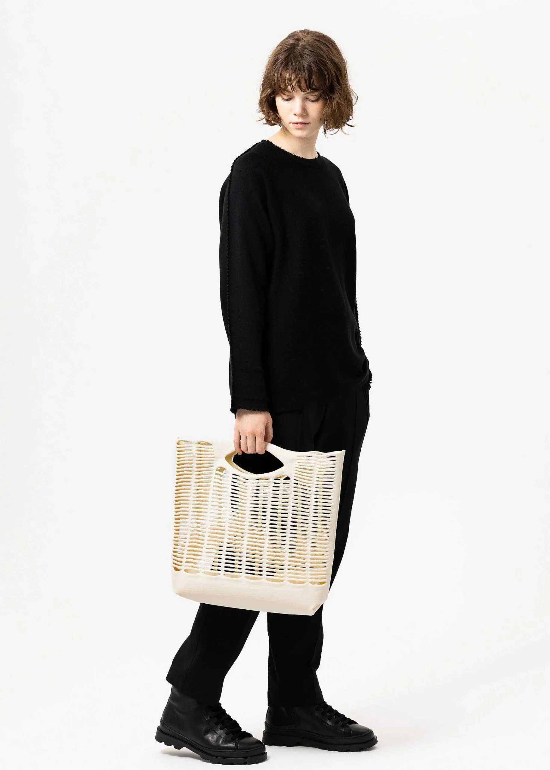 A Lightweight And Soft Knitted Tote Bag Knitted From A Single Thread. It Is Washable And Easy To Handle, So It Can Be Used Casually In Any Everyday Situation, Such As Shopping. It Is A Bag That Fits Into Your Life, Blending Into The Room Even When Filled With Belongings And Placed Like A Basket. The Corners Can Be Woven Inward To Create A Bottom Gusset, And It Comes In Basic Colors That Can Be Enjoyed In Any Season.