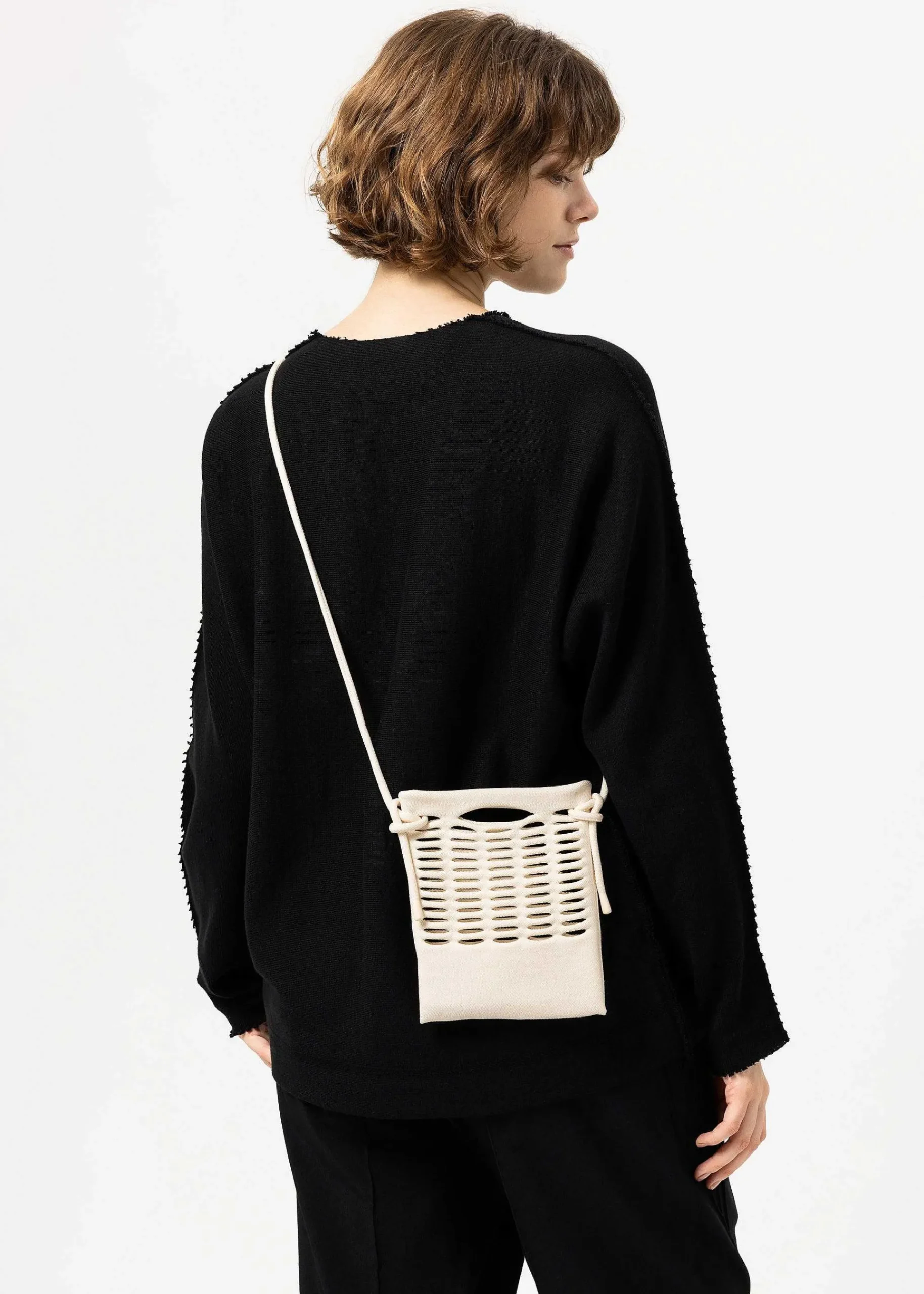 A Light And Soft Knitted Pochette Knitted From A Single Thread. It Can Hold A Smartphone, A Mini Wallet, Etc., And Can Be Used As A Pocket Or As A One-Mile Bag. The Shoulder Strap, Made Of The Same Material, Is Removable And The Length Can Be Adjusted By Tying It In The Wrong Position. It Comes In Basic Colors That Can Be Enjoyed In Any Season.