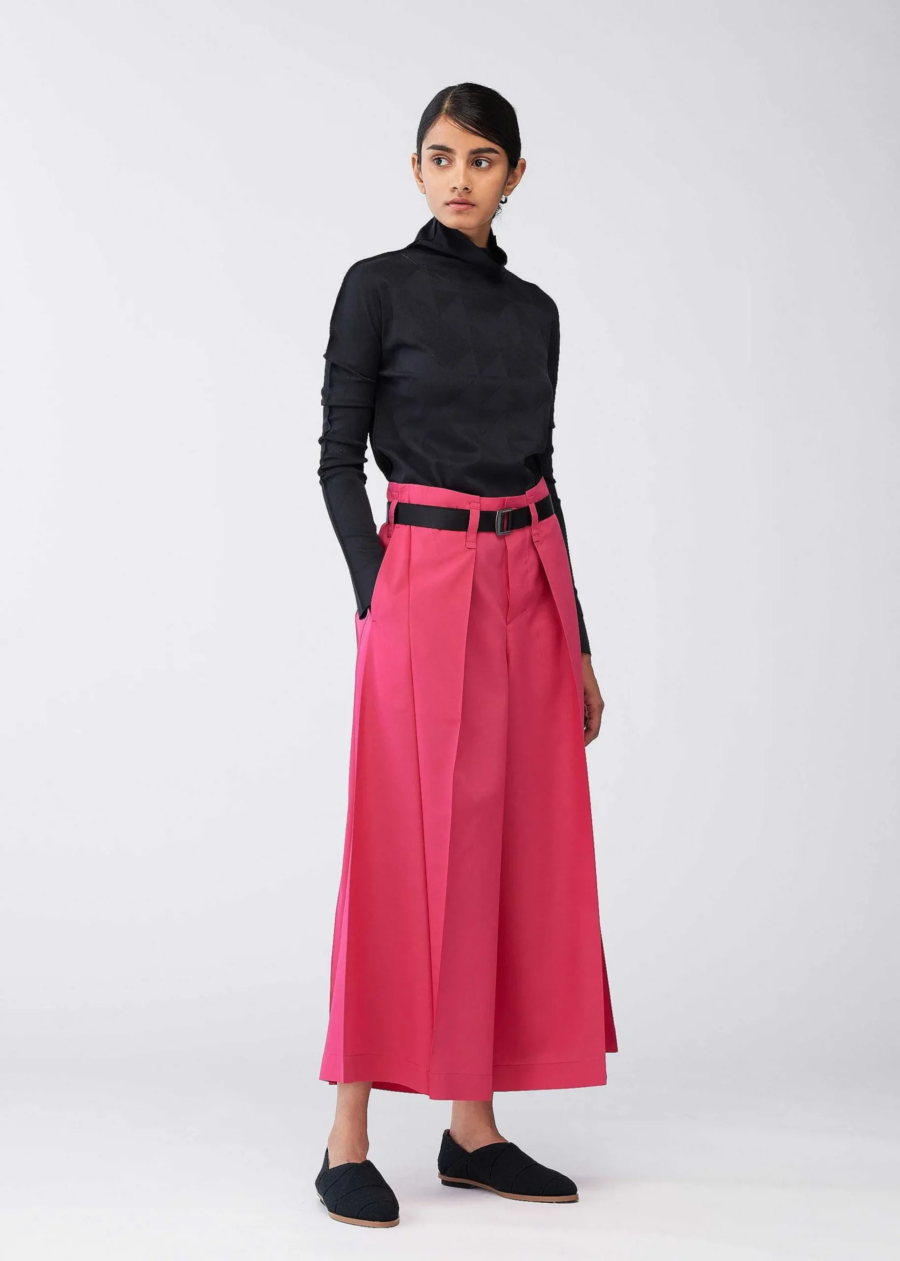 These Wide Pants Feature A Simple Fold Structure That Combines Mountain And Valley Folds. The Waist Can Be Adjusted With The Included Belt. Made From Recycled Polyester.