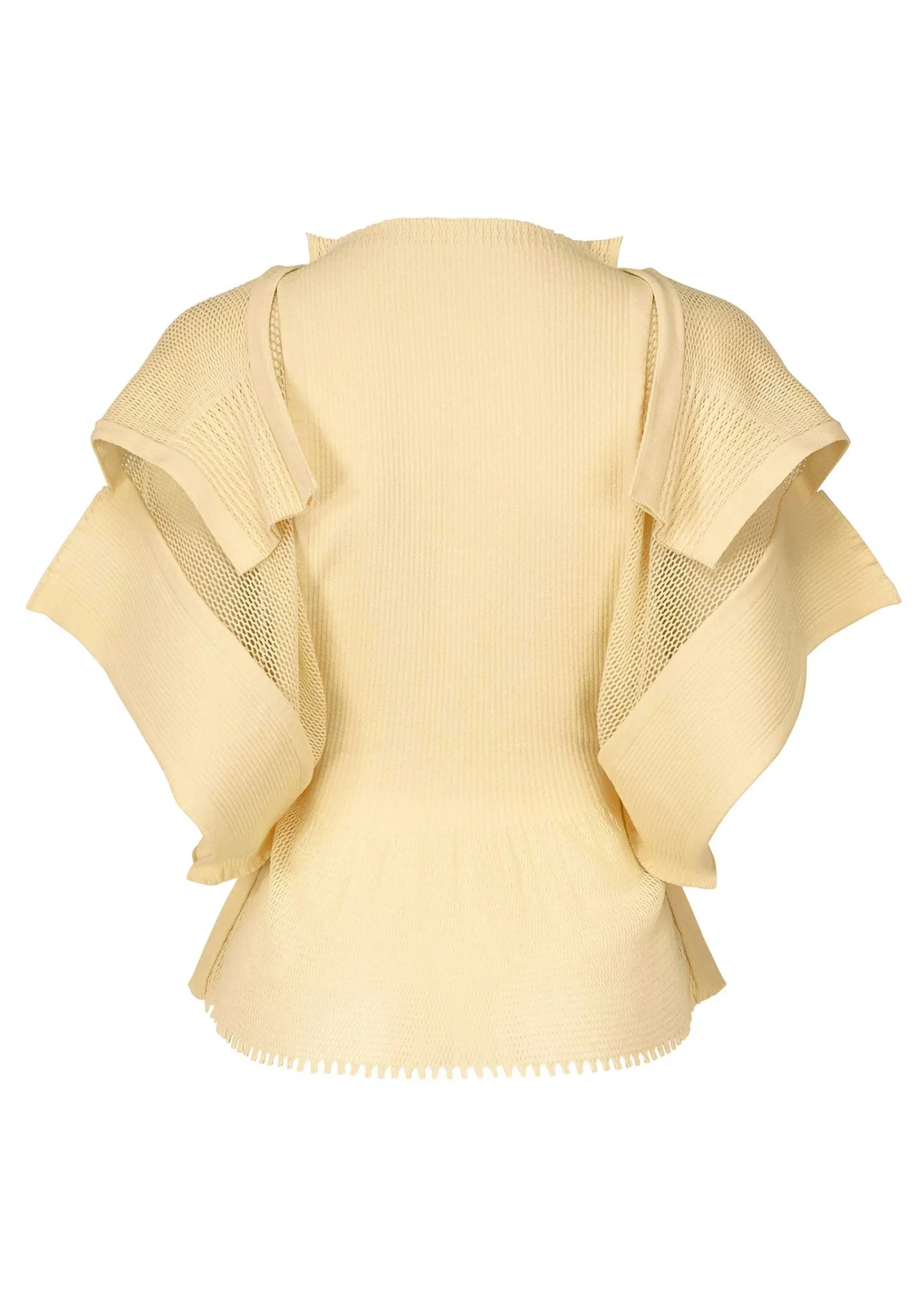 A Short-Sleeved Top Made Of 16 Gauge A-Poc With A Silhouette That Is Just The Right Amount Of Loose Fit And Partially Made Of Mesh. This Item Is Recommended For Daily Use, With A Moderate Amount Of Loose Fit And An Organic Texture. The Sheer, Cool Mesh Knit Gives A Refreshing Impression.