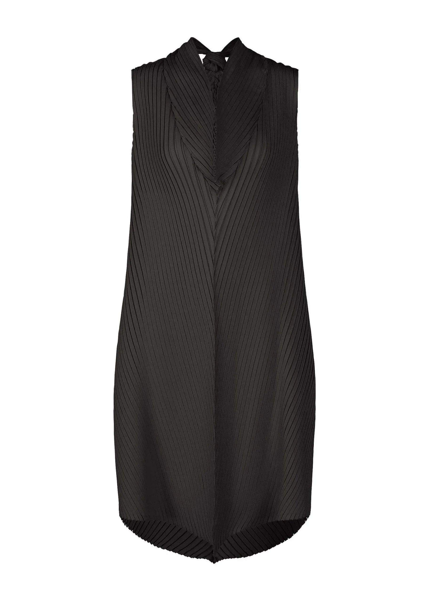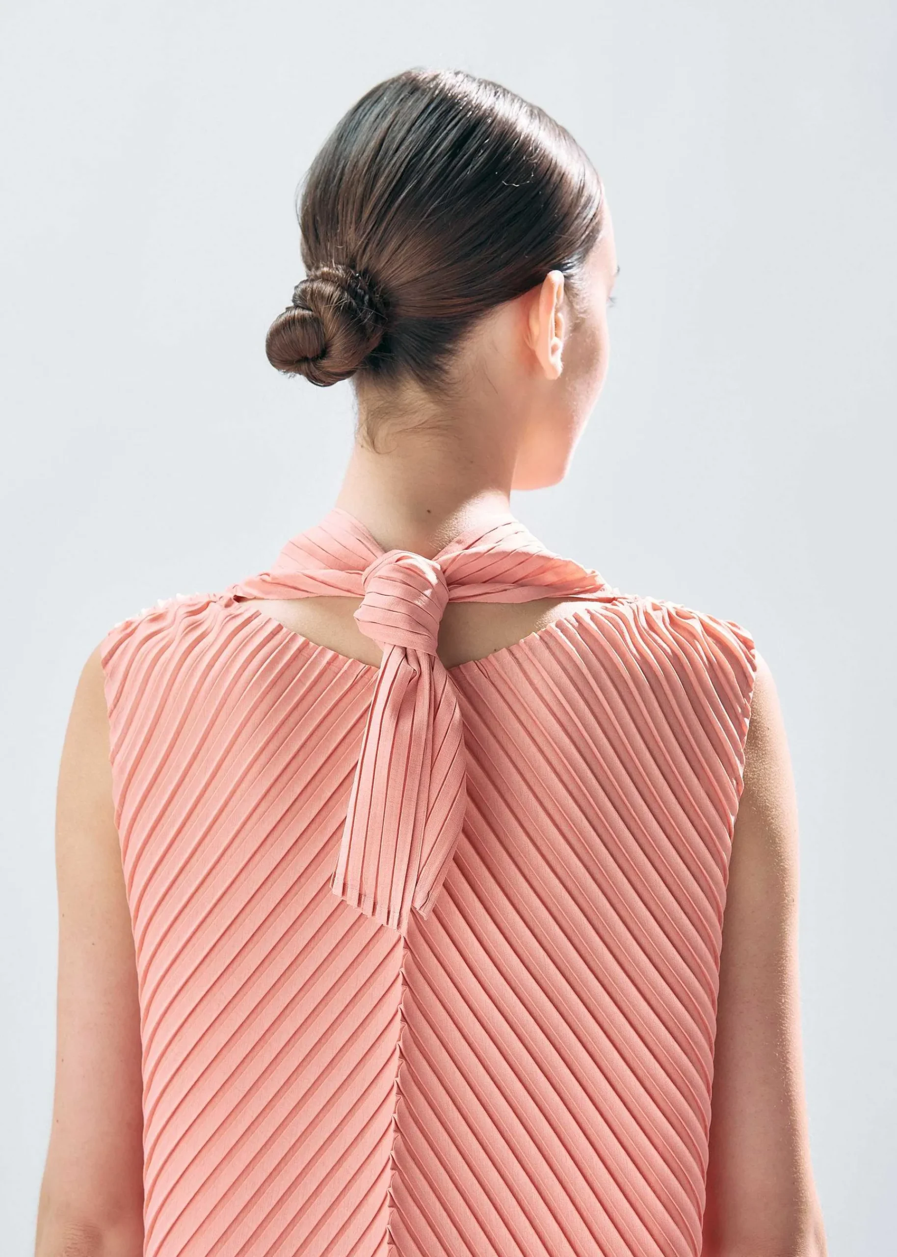 Sleeveless Tunic With Pleats That Have A Texture Like Paper. The Design Features Folds That Highlight The Beauty Of The Pattern. The Tunic Is Made Of 100% Polyester Sap Fabric, Which Is Thin And Firm Like Natural Material, And Has Simple Box Pleats. The Tunic Is Designed To Be Worn By Tying It Around The Neck. Please Note That The Size Of This Product May Vary From Item To Item.