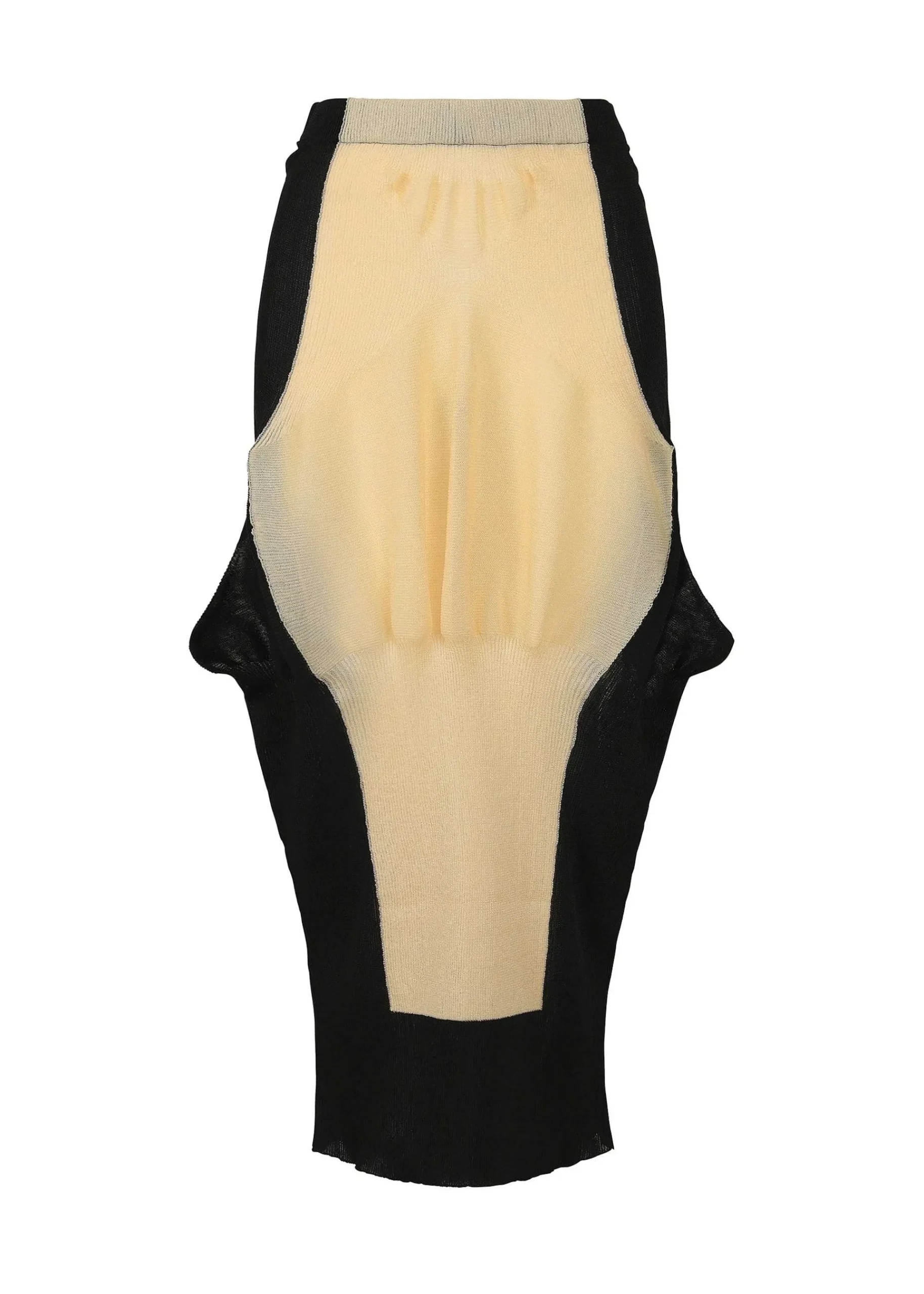 A Seamless Knit Skirt That Gives A Delicate And Elegant Impression. The Design Uses A Combination Of Ribs And Garters To Create A Glossy And Transparent Knitted Fabric With A Colored Pattern That Makes The Silhouette Of Your Body Stand Out.