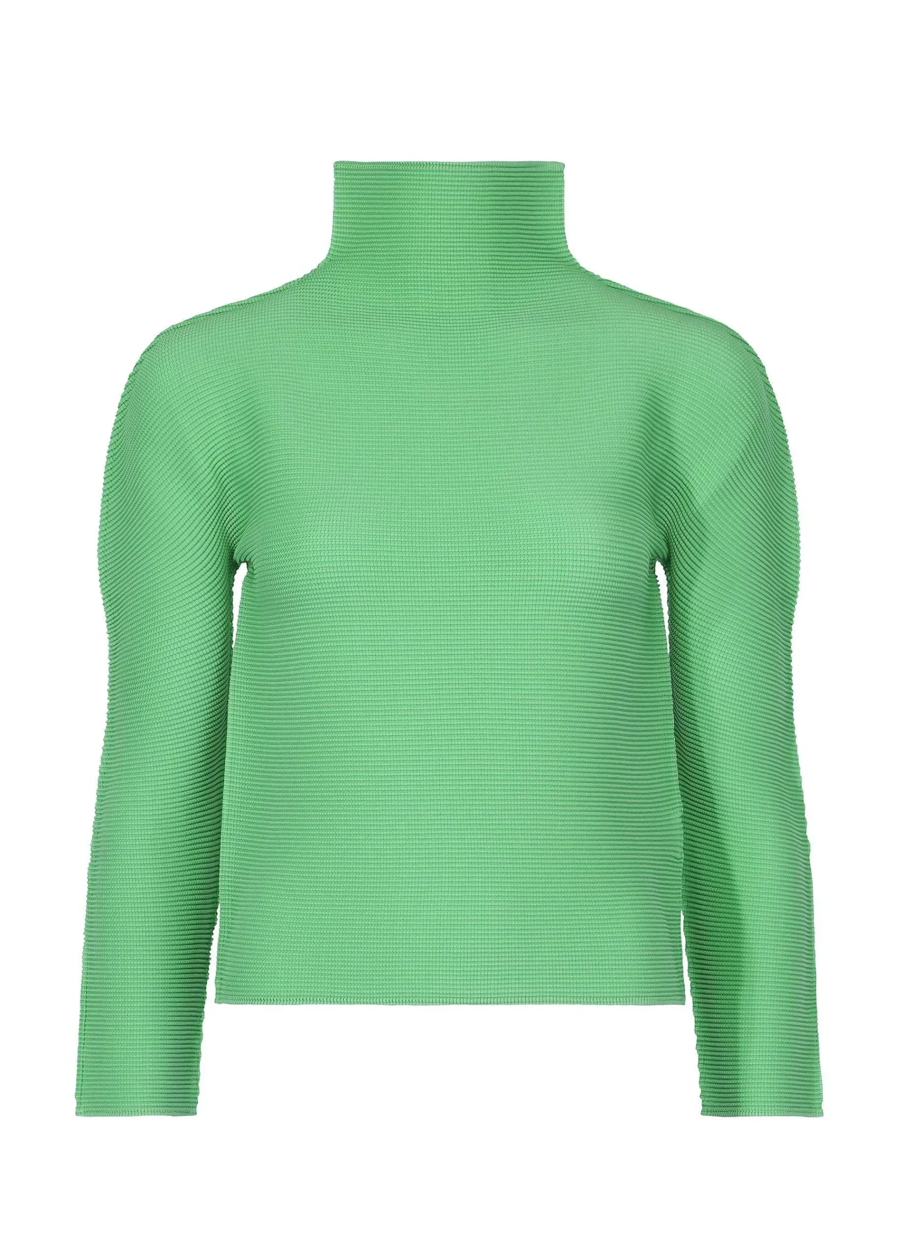 This Is A High Neck, Long Sleeve Top With Stretch Pleats That Are Pleated Vertically And Horizontally.
