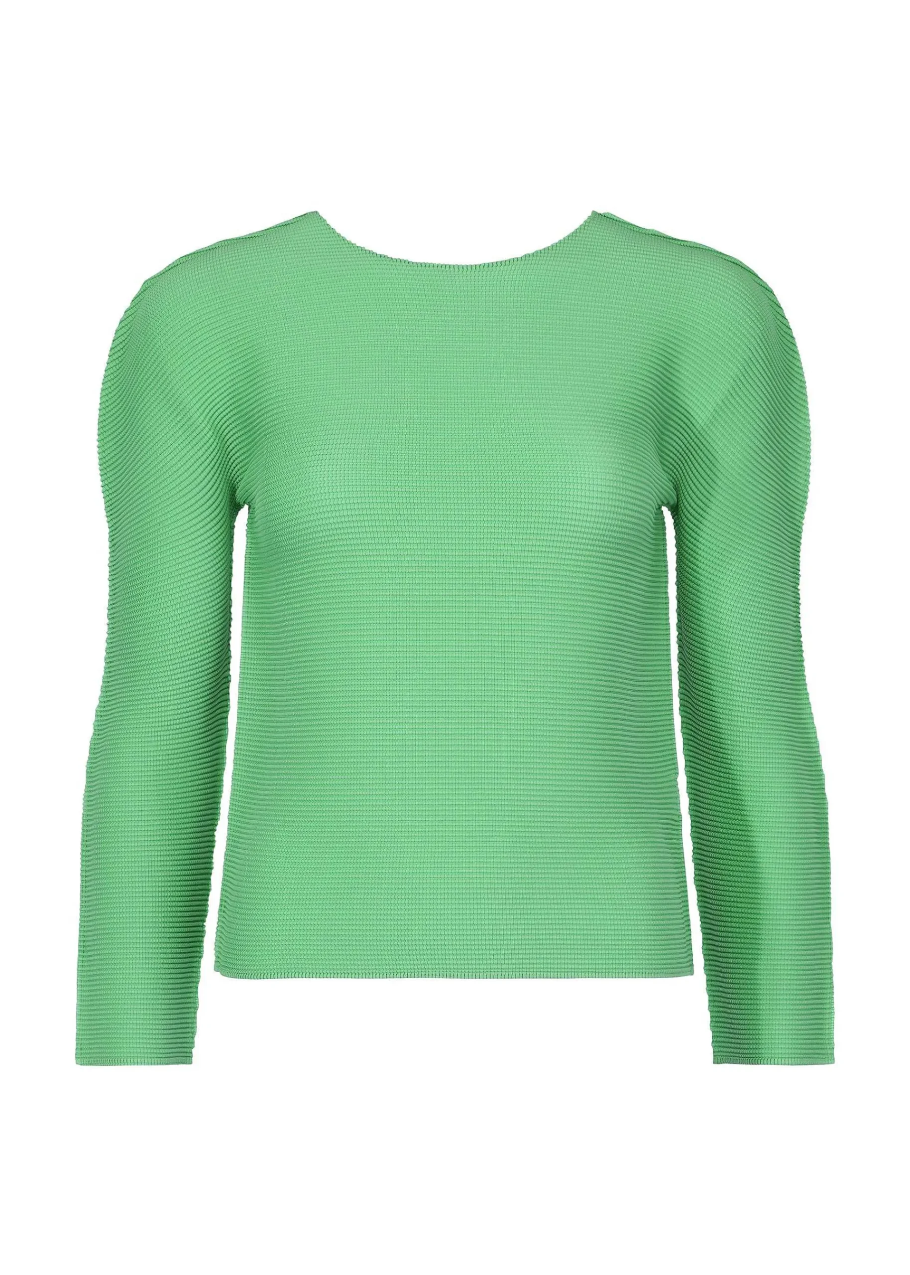 Round Long Sleeve Top With Elastic Stretch Pleats, Pleated Both Vertically And Horizontally.