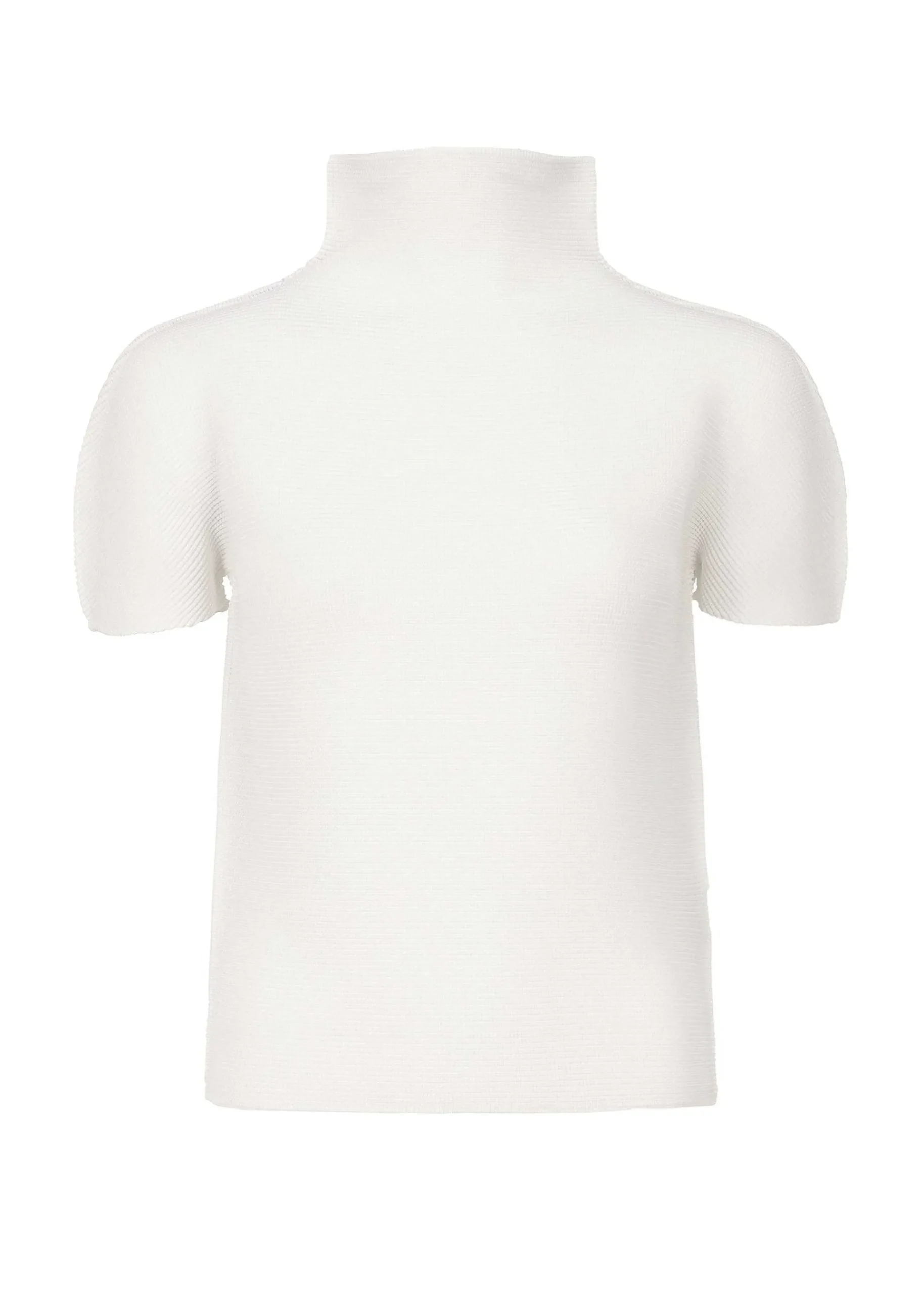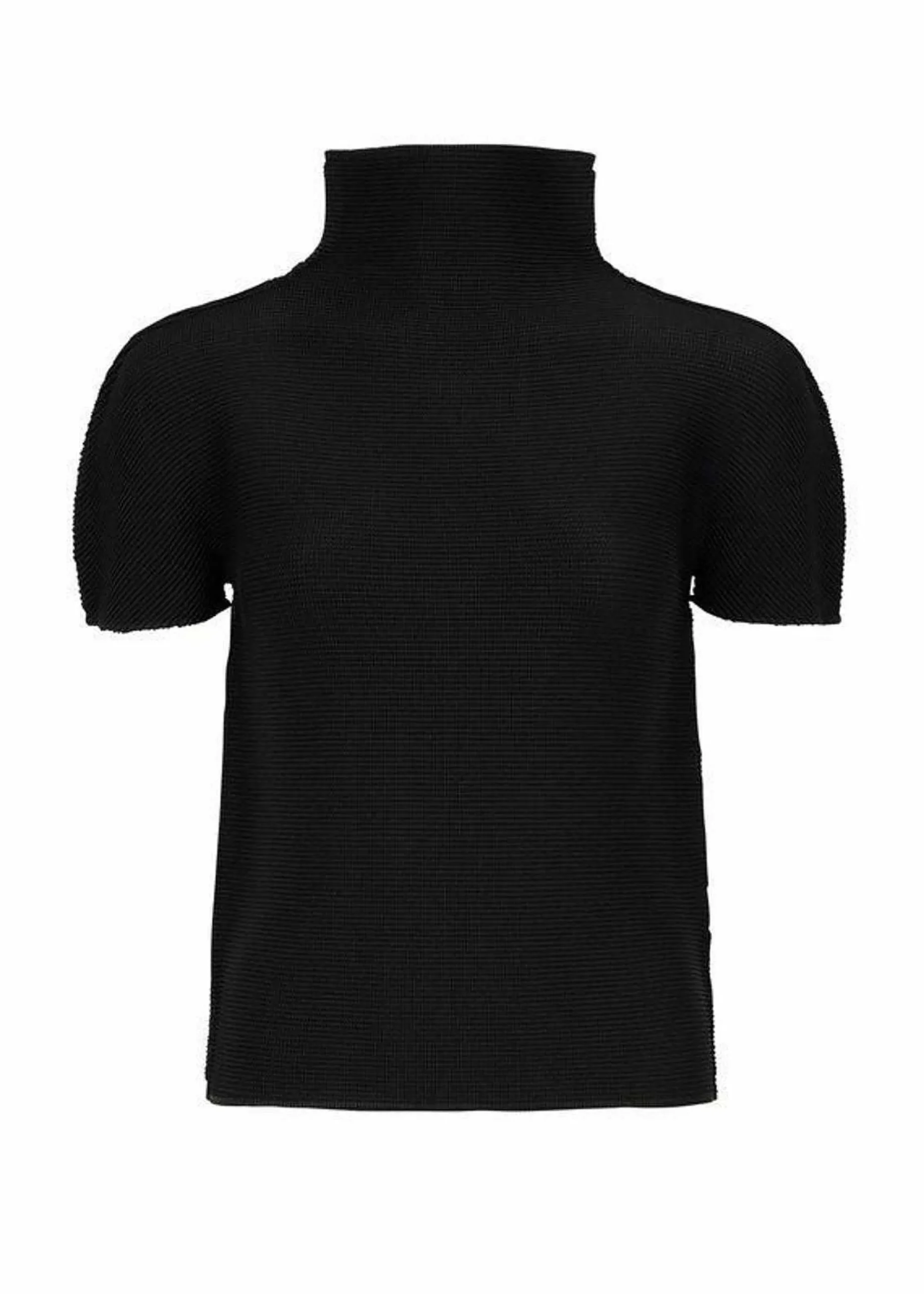 High-Neck Short-Sleeve Top With Stretch Pleats, Vertically And Horizontally Pleated.