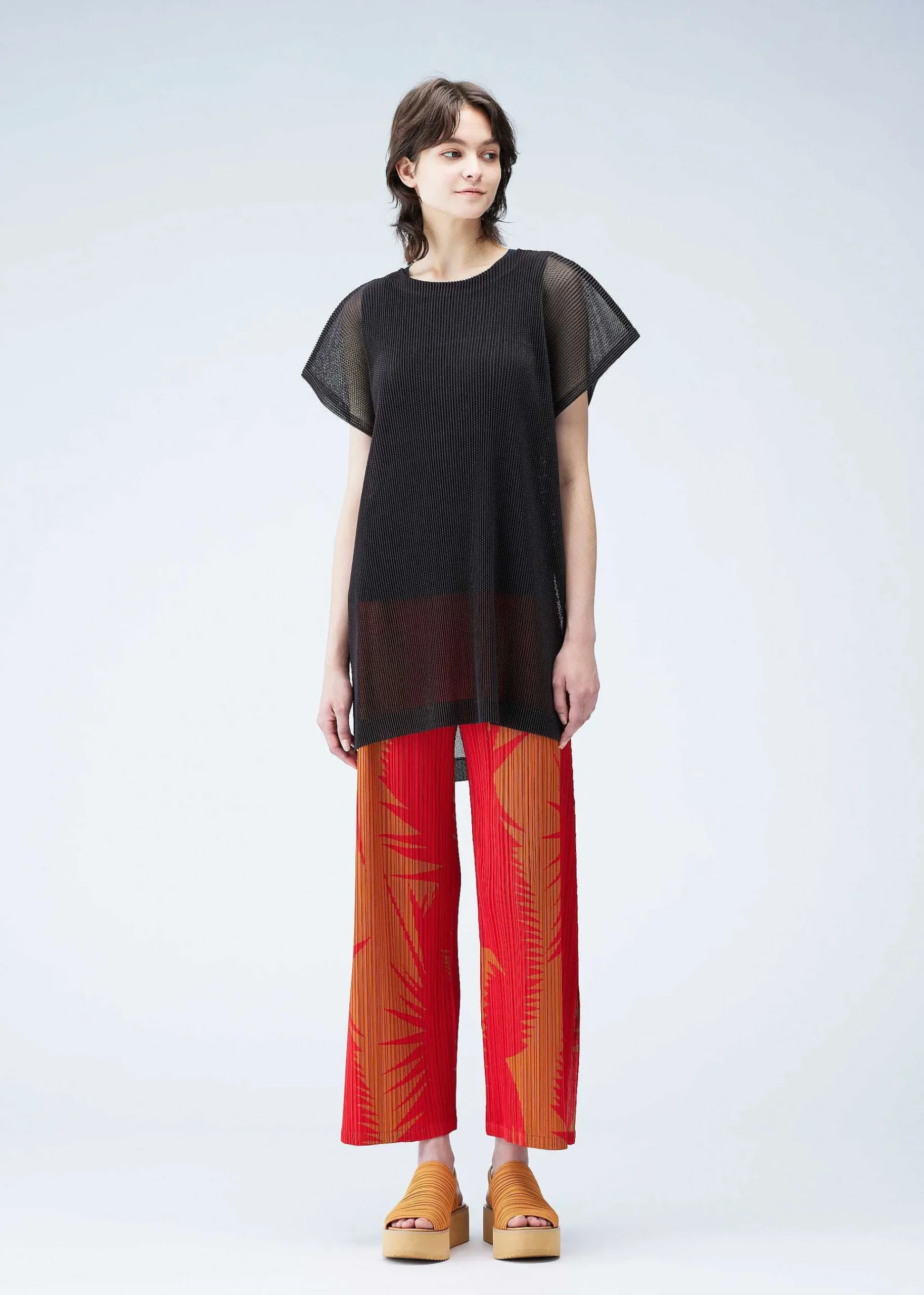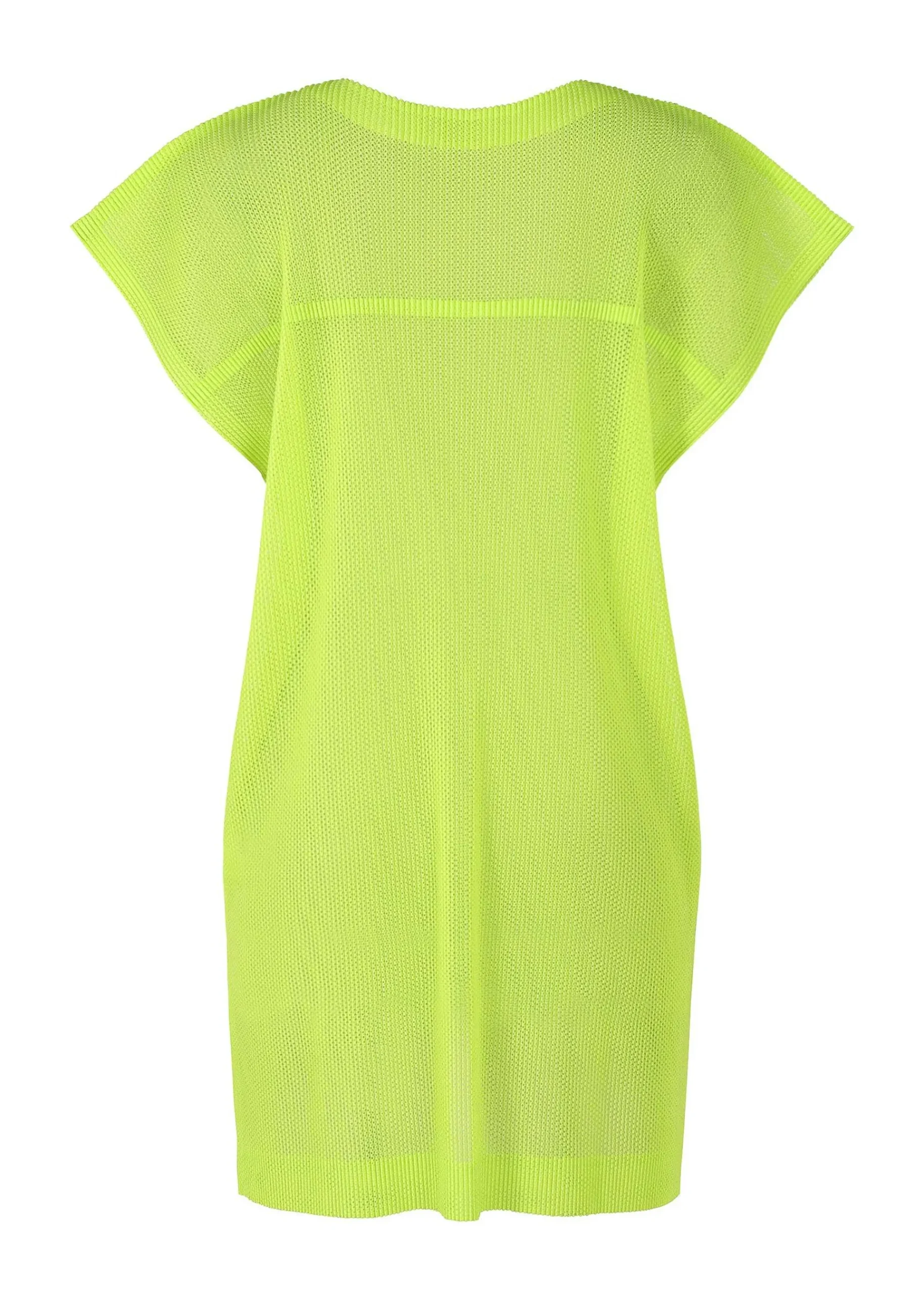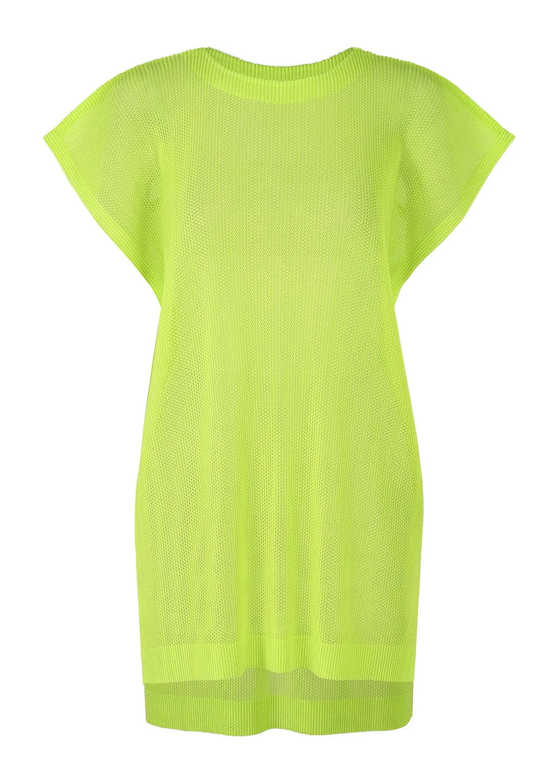 This Crew Neck Tunic Is Made Of Mesh Fabric With Evenly Spaced Pleats.