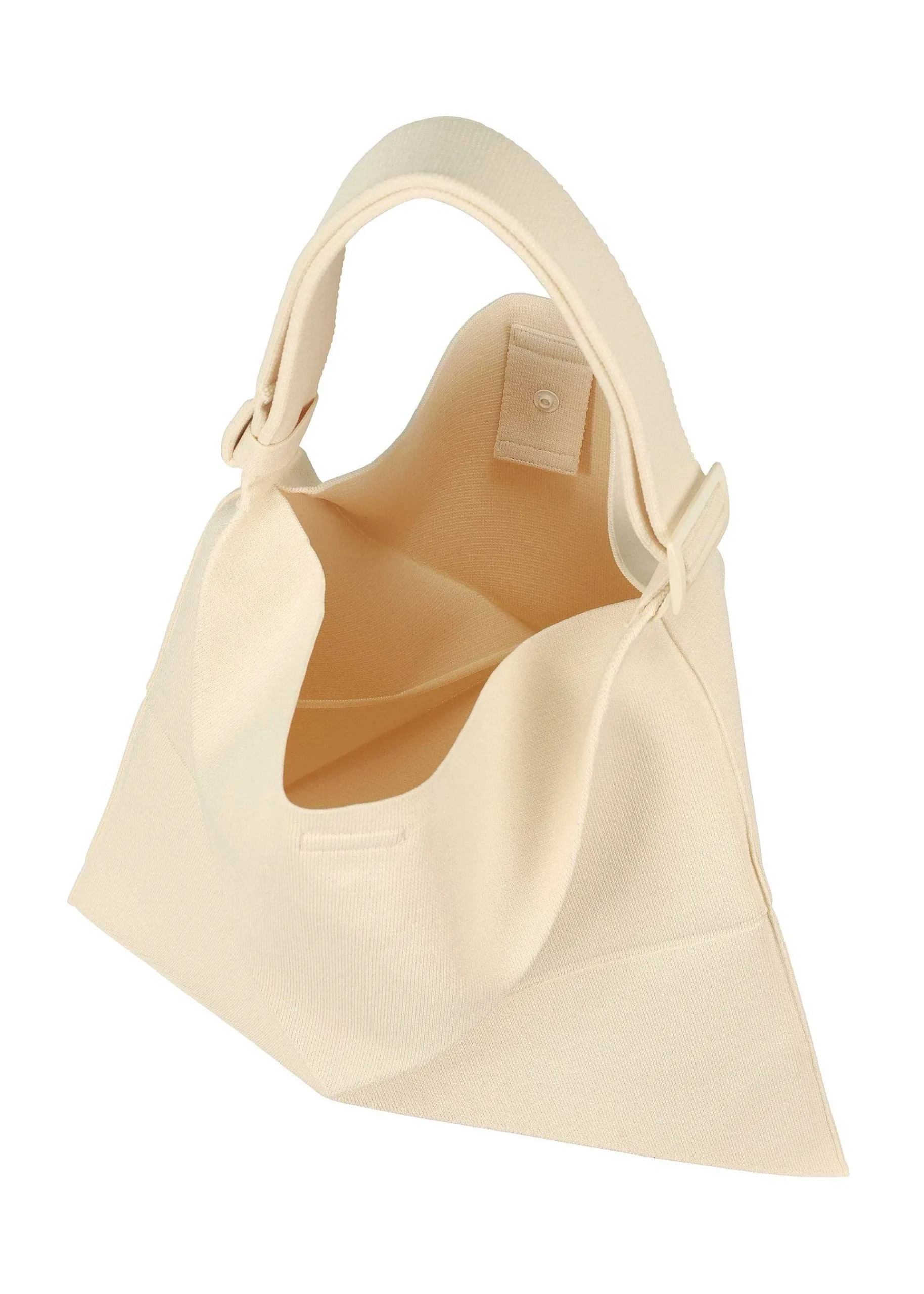 A Shoulder Bag That Incorporates Three-Dimensional Structures Used In Architecture Into Its Design. Composed Of A Minimum Number Of Parts, It Has An Interesting Architectural Appearance And The Convenience Of Being Foldable. Tightly Woven With Recycled Polyester Highly Water-Repellent Stretch Yarn And Heat-Fused Yarn.