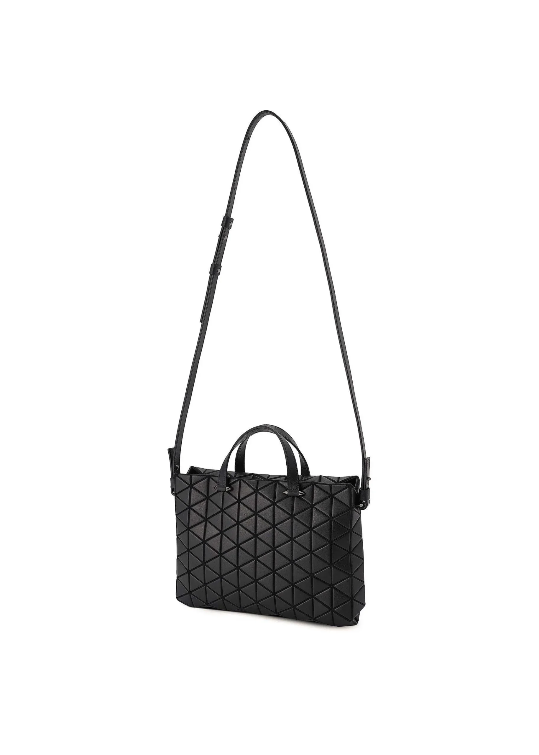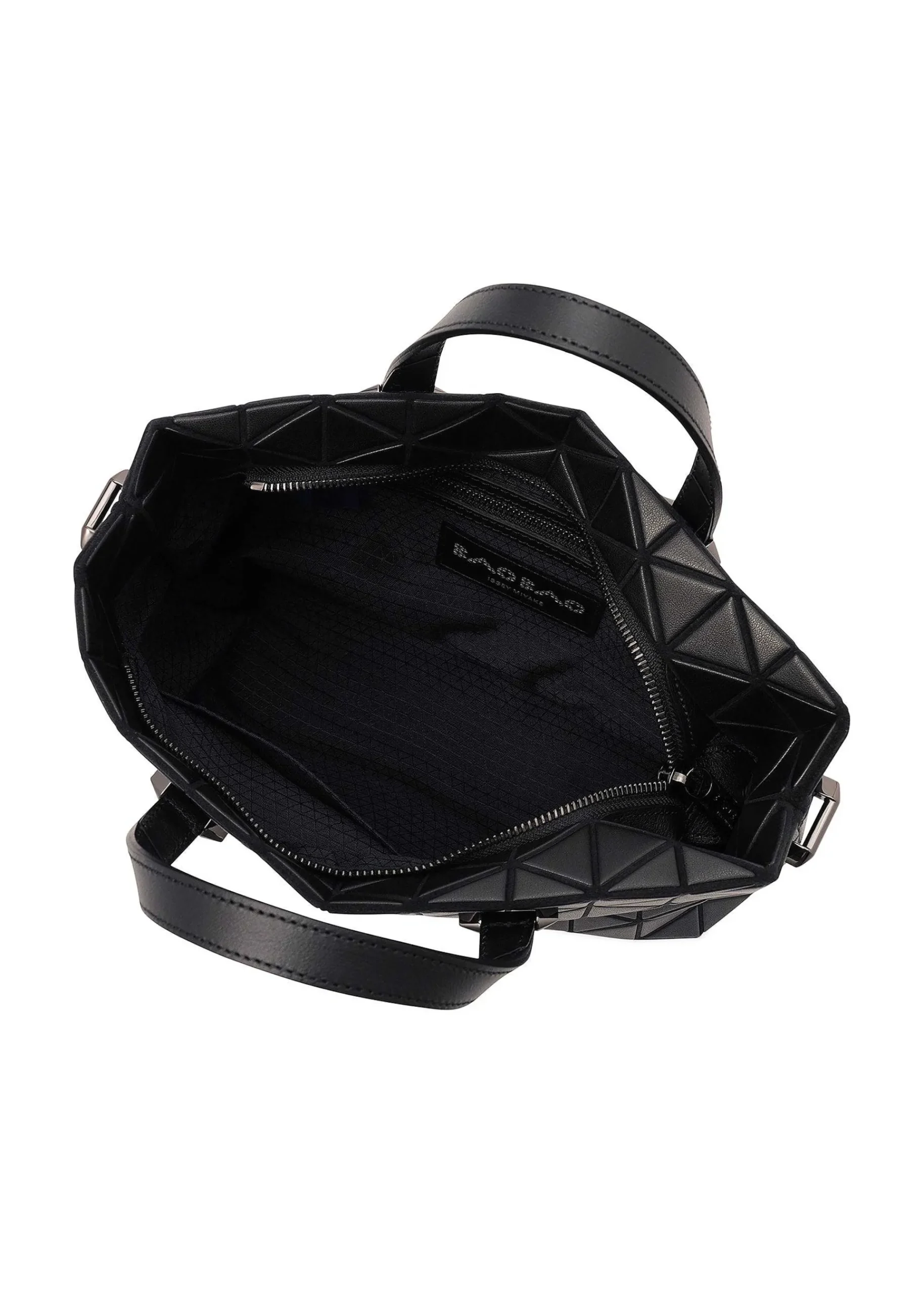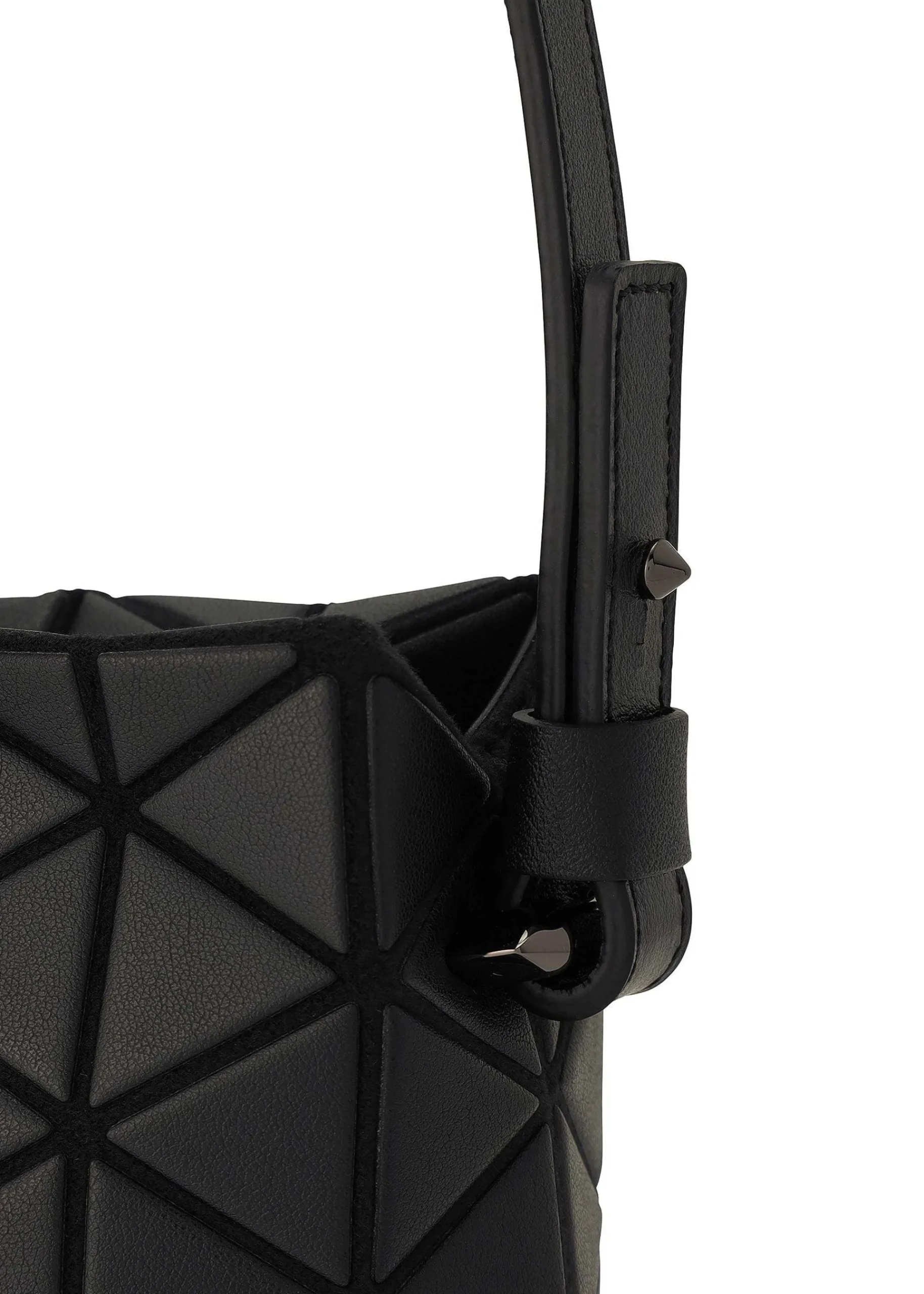 A Mini Handbag With A Characteristic Barrel-Like Shape Made Up Of Equilateral Triangular Pieces. The Use Of A Leather-Like Matte Material Creates An Elegant Atmosphere. The Strap Is Removable.