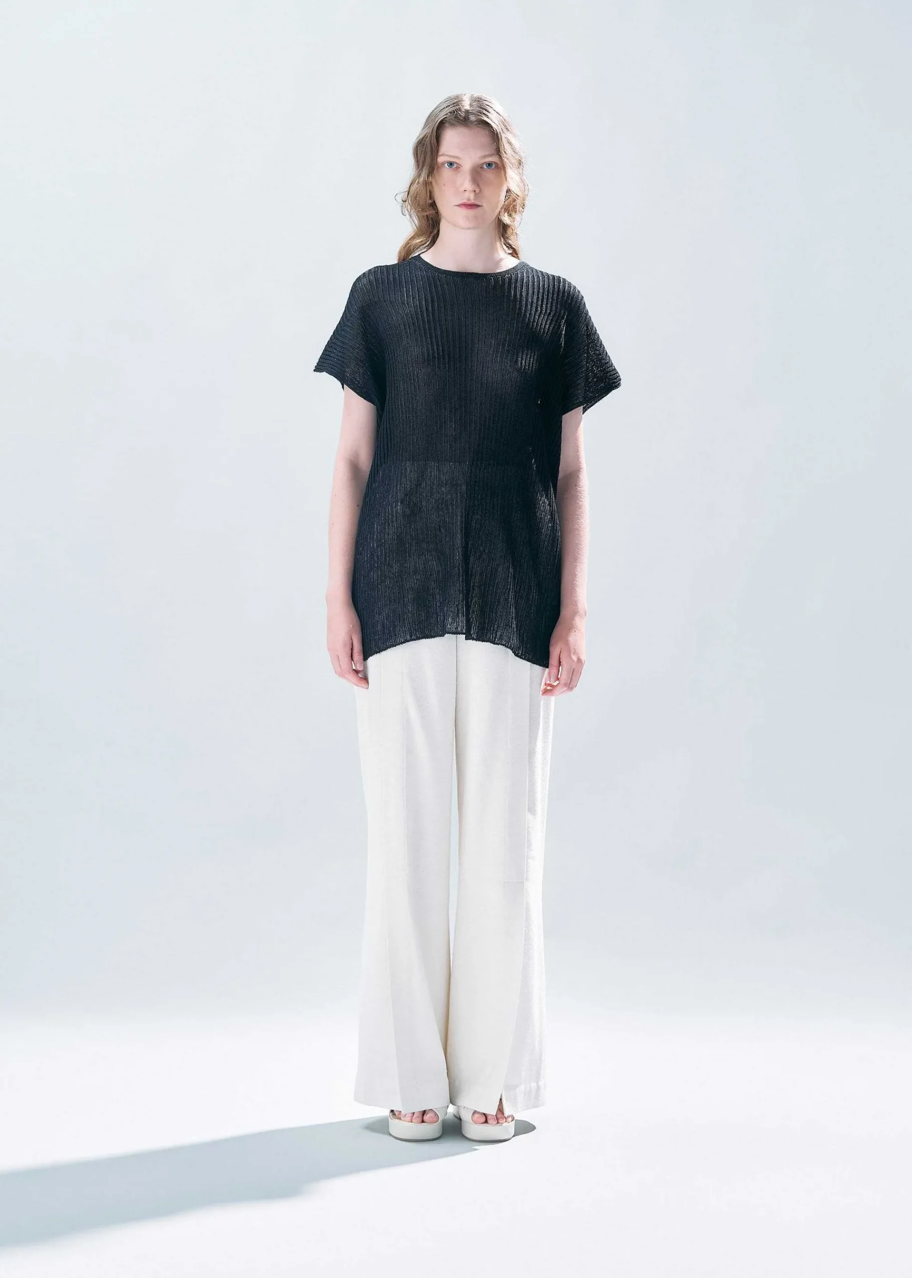 A Short-Sleeved Ribbed Knit Top With A Dry Texture And Cool Transparency From The Washi Paper Blend. It Is Knitted From A Material That Combines Washi Paper And Modal, And Has A Slightly Draped Silhouette.