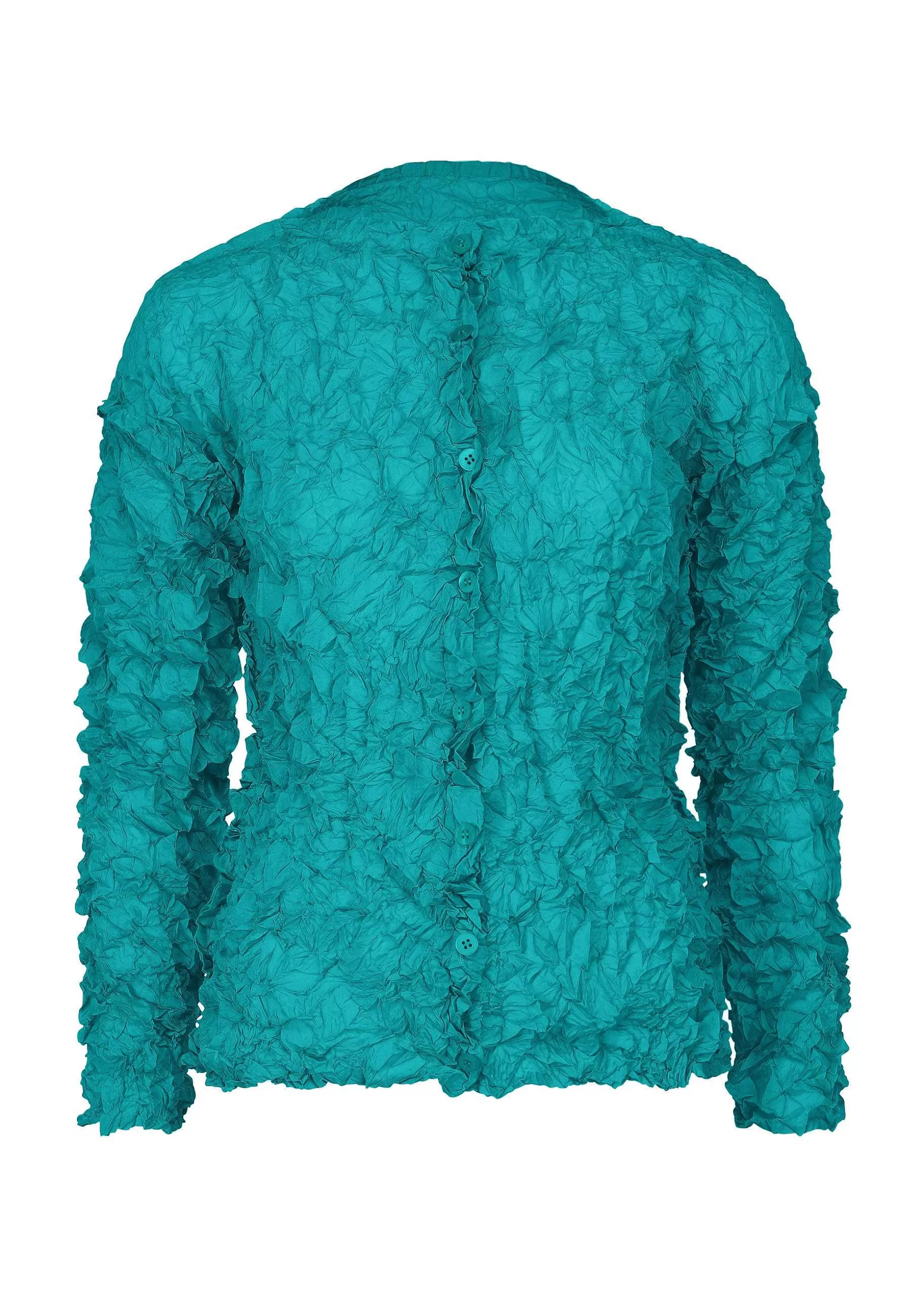 This Is A Three-Dimensional Crew-Neck, Long-Sleeved Cardigan Made From Thin Polyester Material With Crushed Pleats.