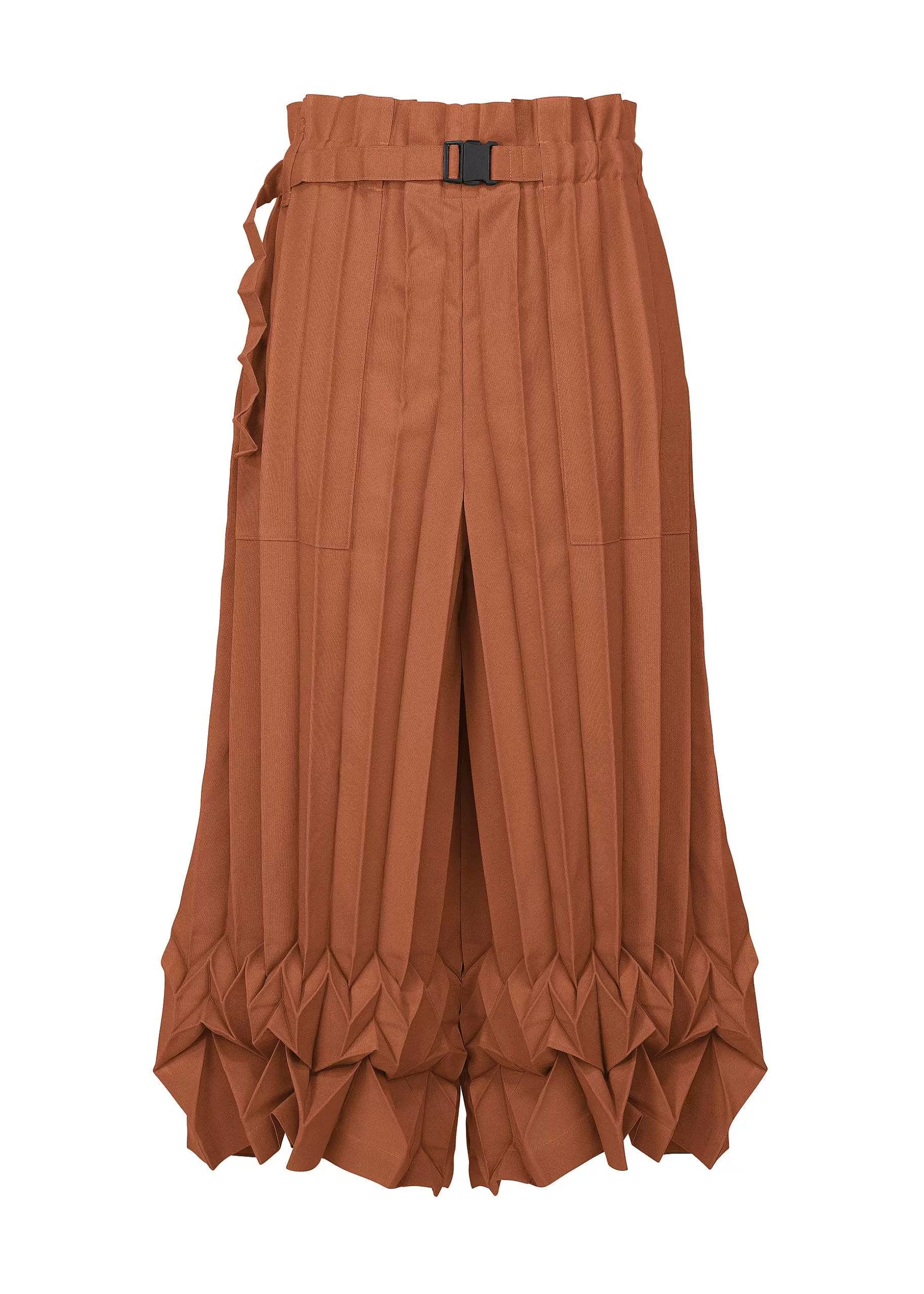These Wide Pants Feature A Geometric Pattern On The Bottom And Can Be Folded Compactly Along The Pleats. The Pattern Appears Three-Dimensional When Worn. There Are Pockets On Both Sides.
