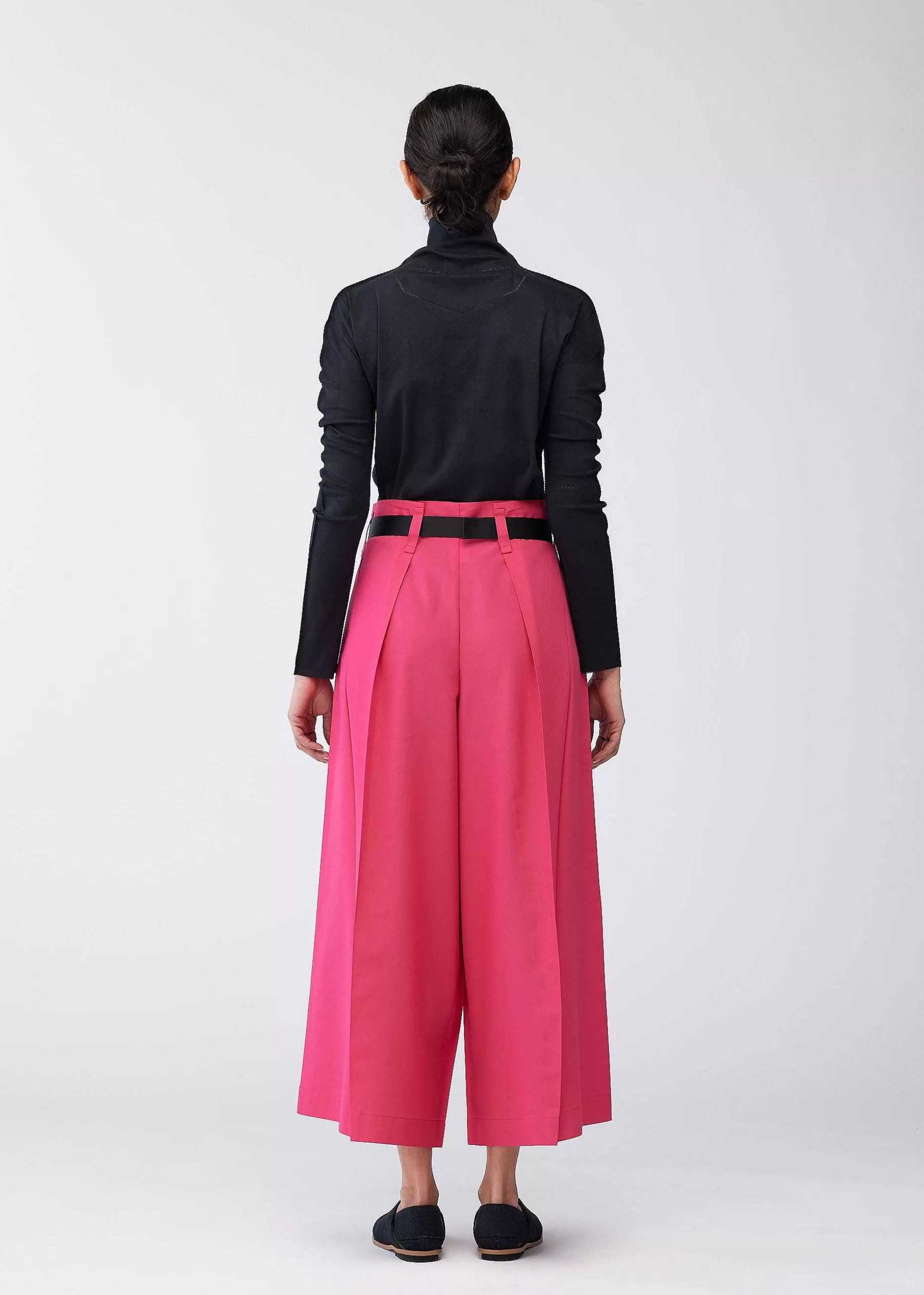 These Wide Pants Feature A Simple Fold Structure That Combines Mountain And Valley Folds. The Waist Can Be Adjusted With The Included Belt. Made From Recycled Polyester.