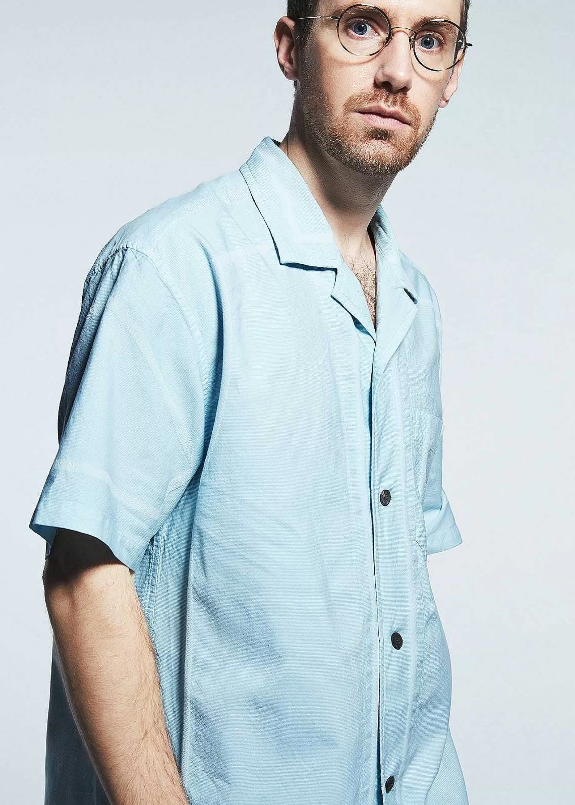This Open-Collar Short-Sleeve Shirt Is Dyed With Soft, Fine-Count Cotton And Some Nylon Mixed In. The Cotton And Nylon A…