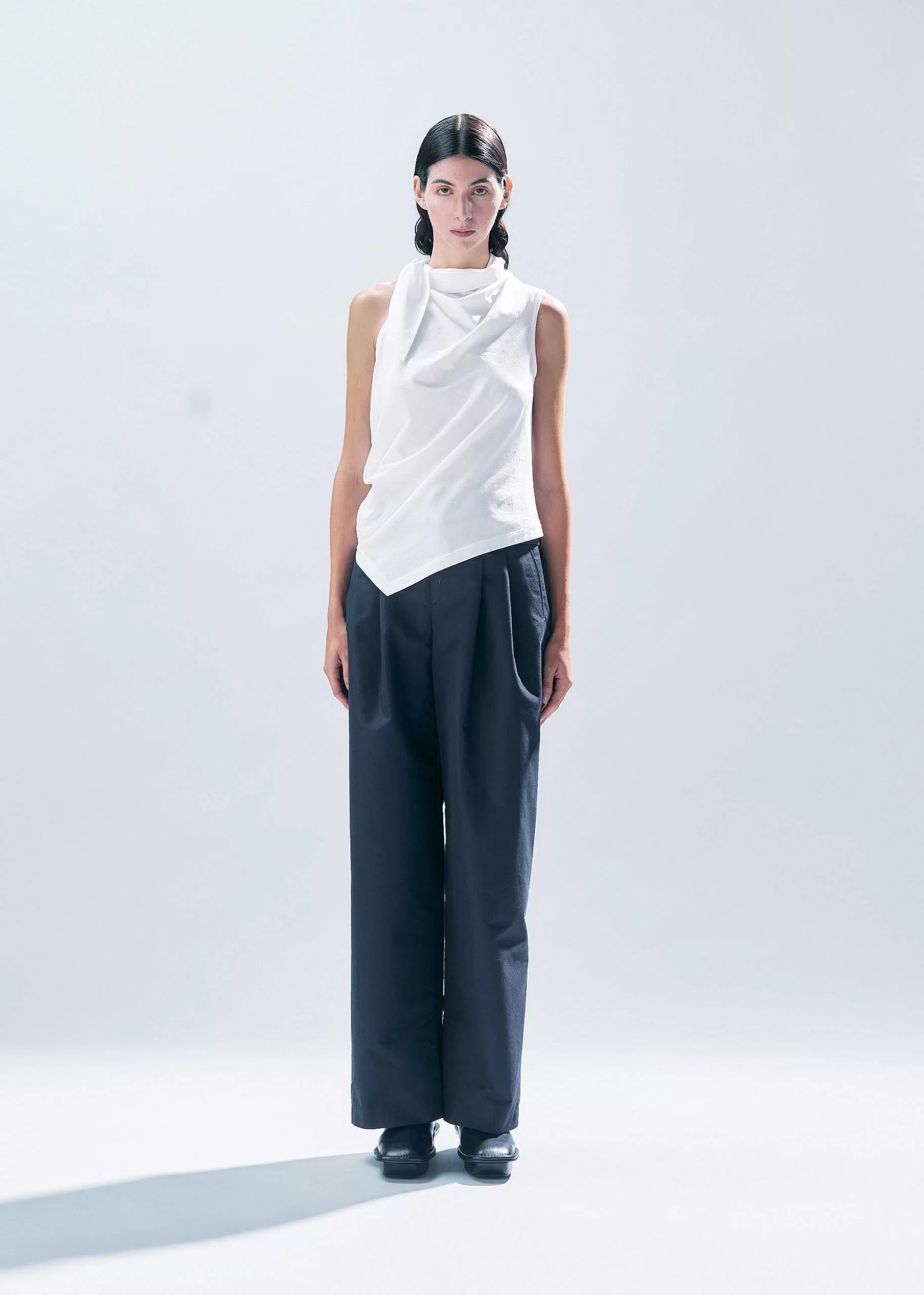 A Sleeveless Top With A Voluminous Design At The Collar. We Use A Strong Twist Jersey Cotton Jersey That Eliminates The …