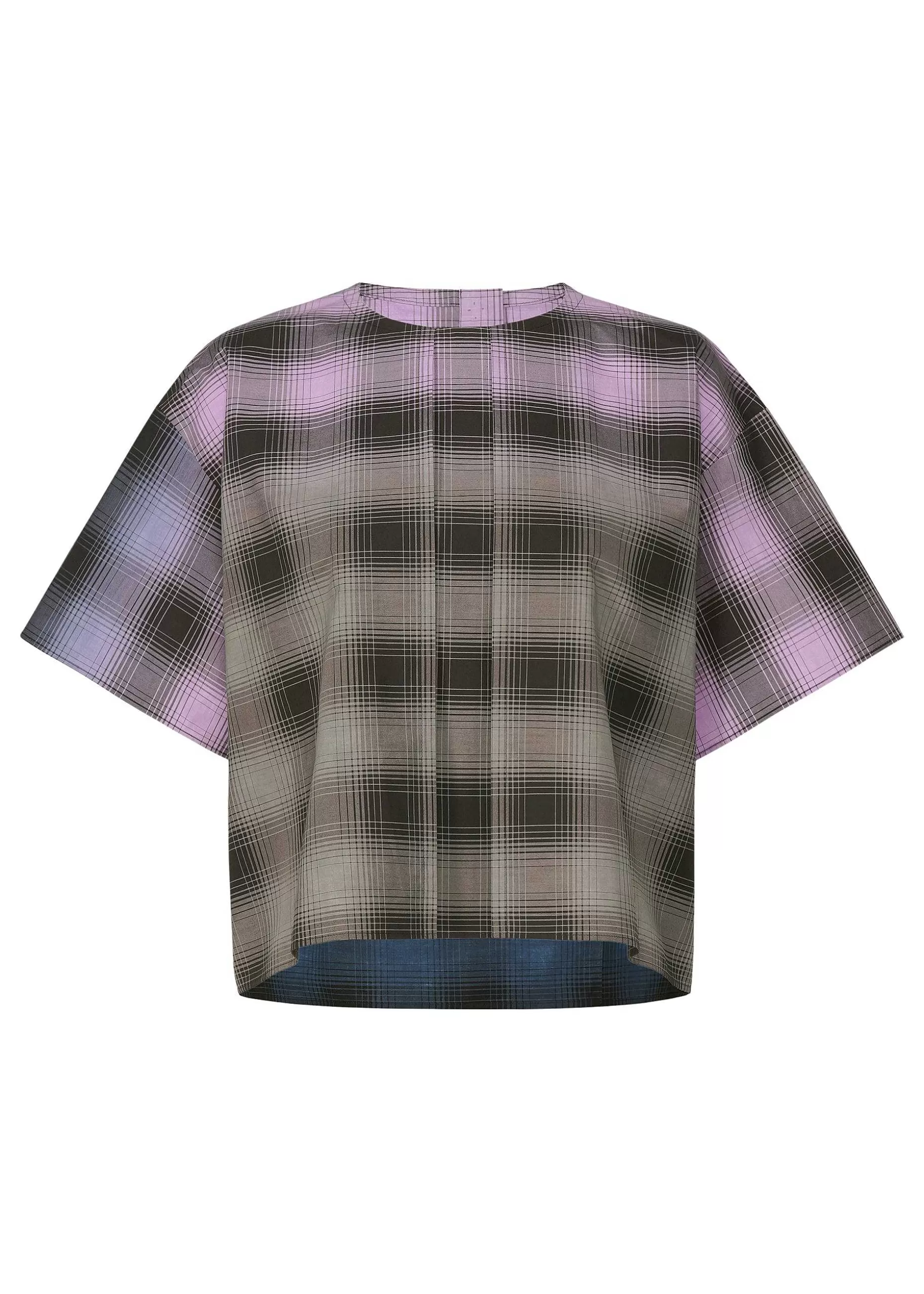 This Gorgeous Crew-Neck Short-Sleeve Top Is Made Of 100% Organic Cotton Checkered Broadcloth With A Three-Color Gradatio…